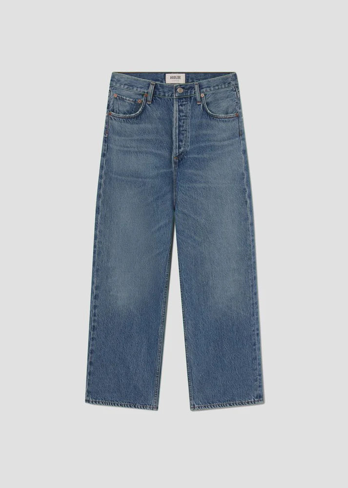 AGOLDE's Ren jeans from the Weightless Collection offer the perfect blend of comfort and style. Made from regenerative cotton, they feature a high-rise waist and cropped wide legs for a relaxed yet flattering silhouette. The lightweight fabric ensures all-day comfort, making them ideal for casual wear. Pair them with a half-tucked tee for a cool, effortless look.
