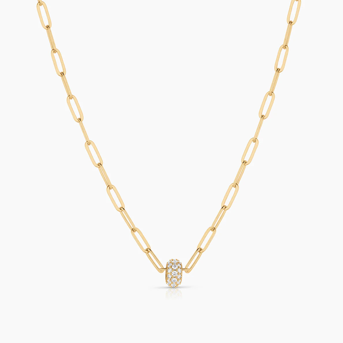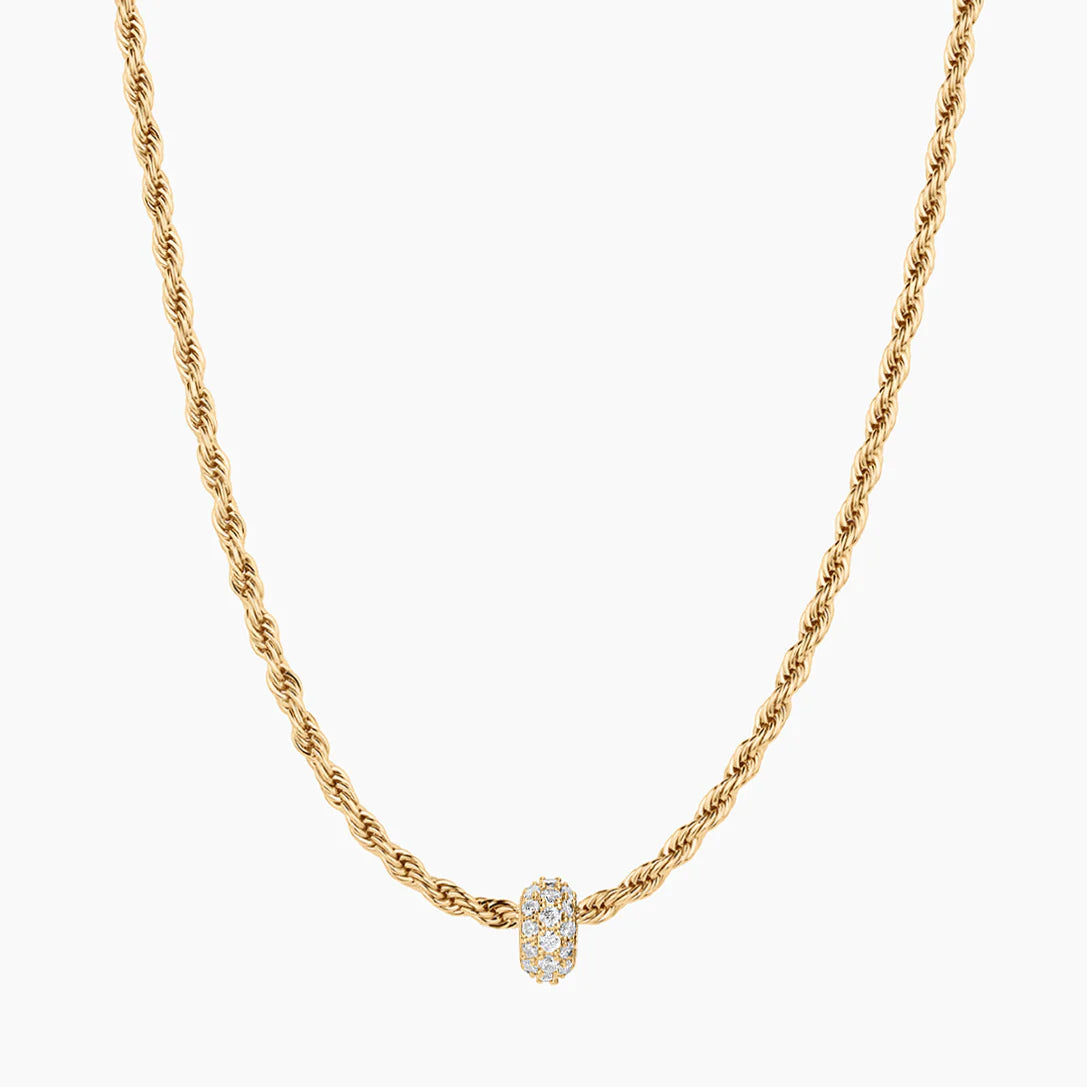 This sparkly bead needs no introduction. The Astra Pavé is the center of attention, whether worn alone on a classic slim chain, or joined alongside other THATCH beads.