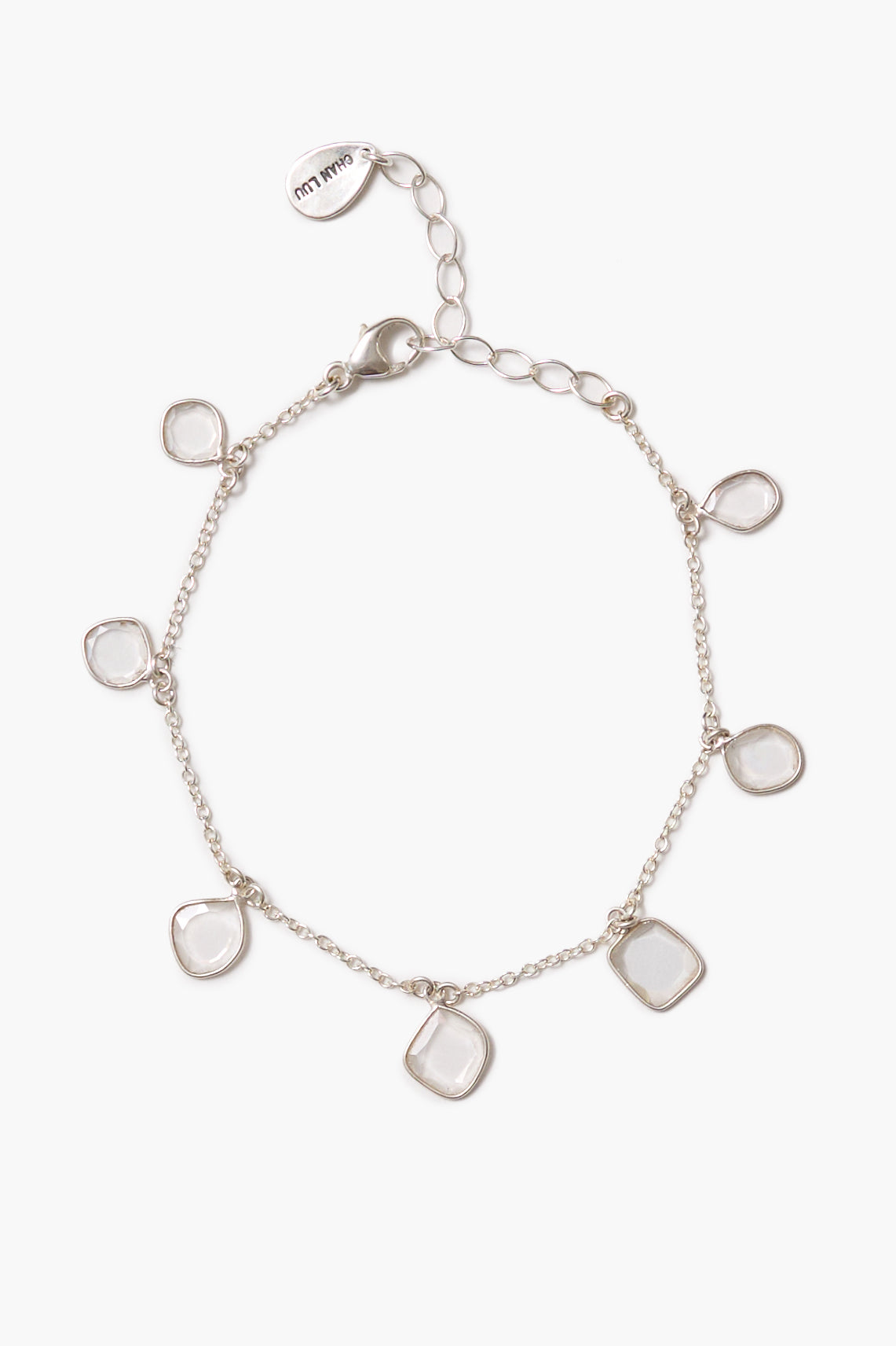 Sterling silver bracelet featuring bezel wrapped moissanite slices. 6 - 7 1/4in. length. Adjustable.