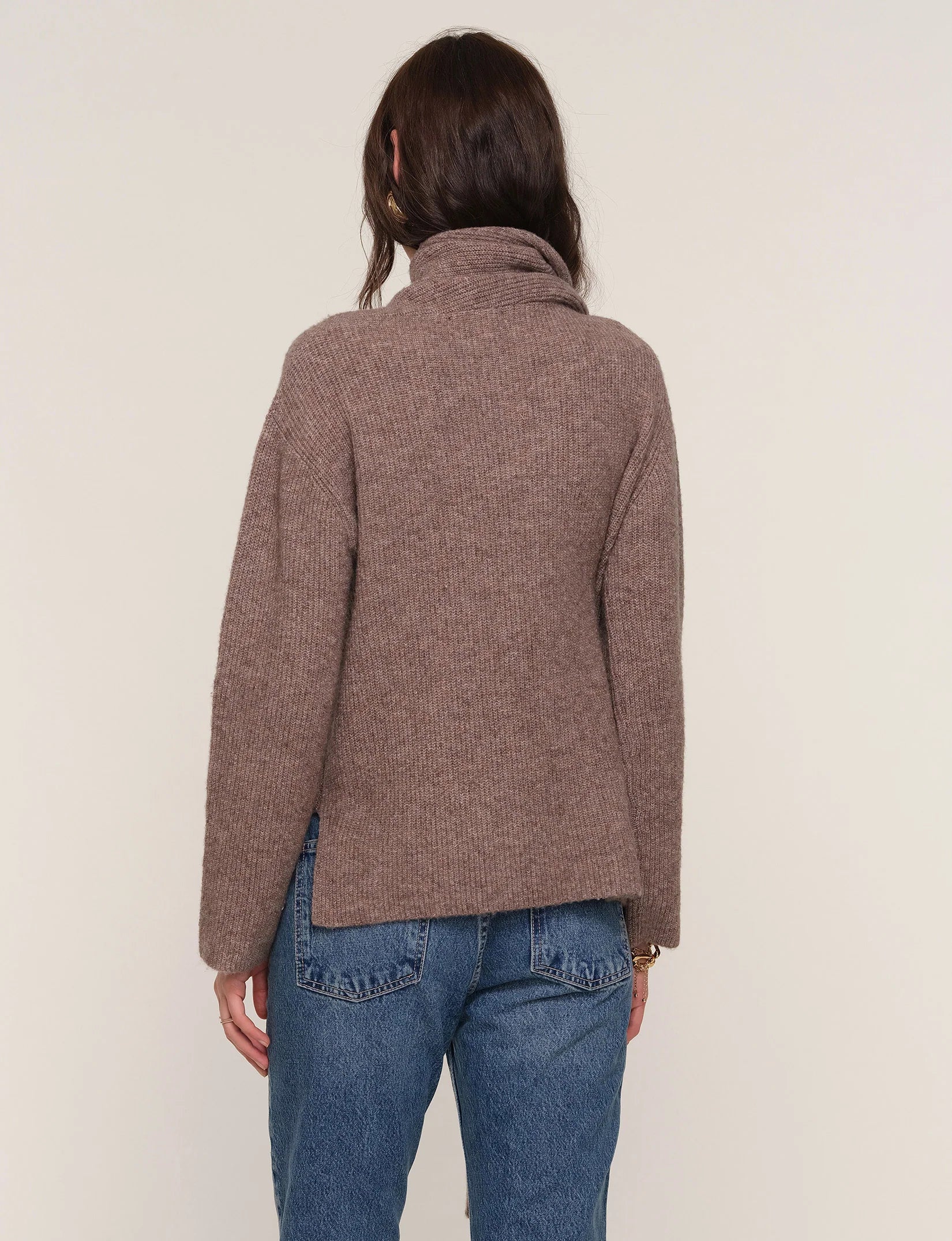 The Darcey Sweater is a rib knit, in a soft, melange yarn. It has a relaxed fit and a self scarf that is attached at the neck. Stay super cozy all season long.