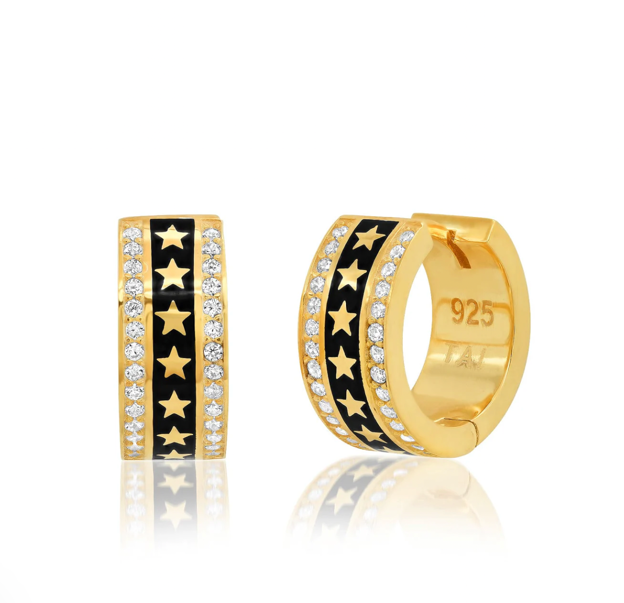 Update your look with these elegant, sparkling huggies. Made from gold vermeil with enamel detailing and CZ accents, they are designed to hug the earlobe and are gorgeous worn alone or with multiple piercings.