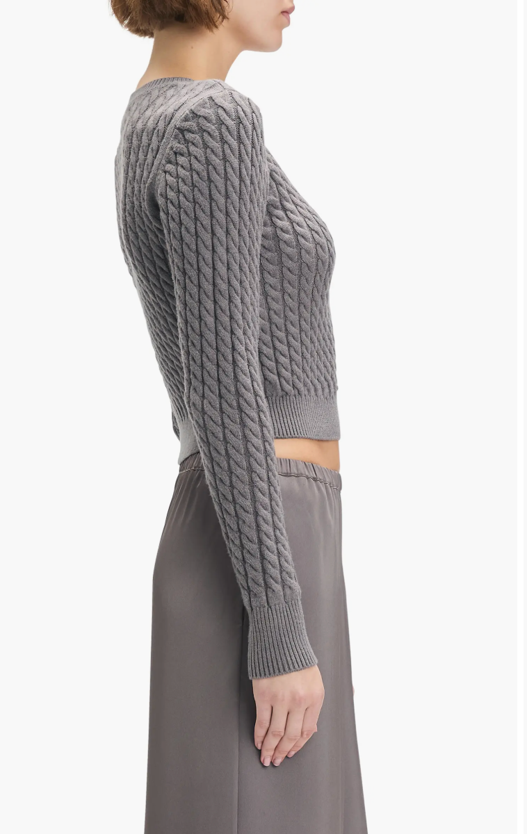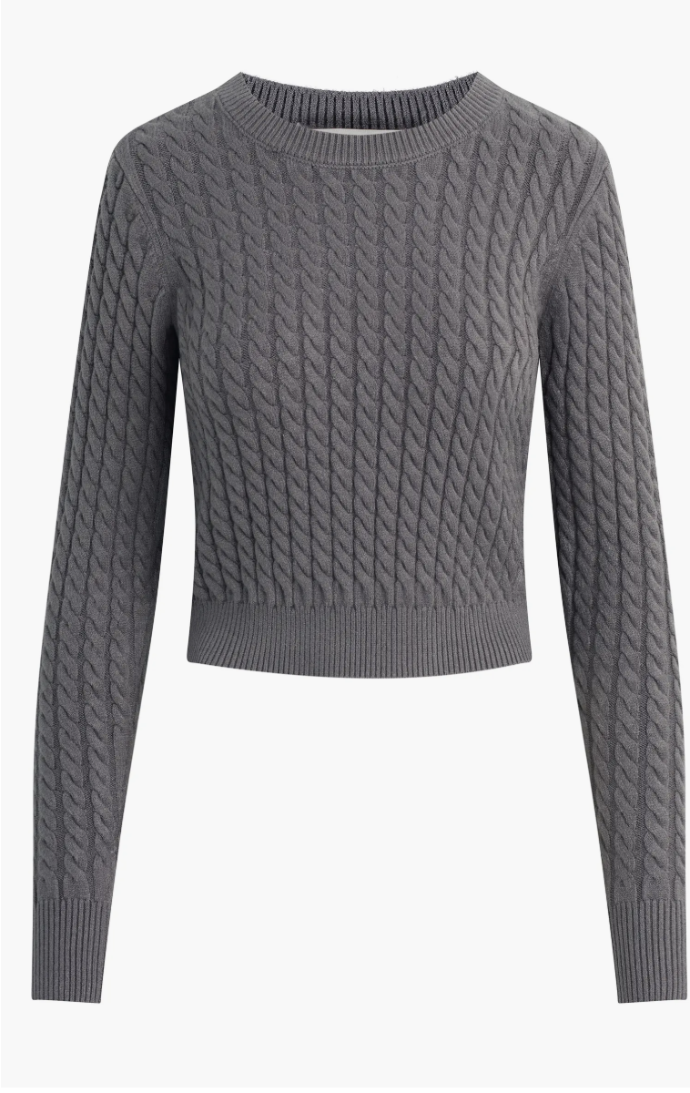 Cropped with a classic fit and fine cable stitching, this long-sleeve sweater is knit from a soft viscose blend that feels as good as it looks.