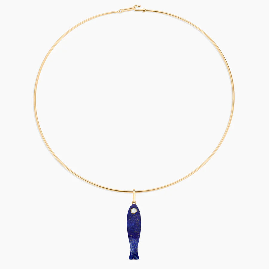 She's a best seller for a reason. Thatch's new favorite hand-carved gemstone fish charm has quickly become the must-have charm of the season. This lapis fish (with a mother of pearl eye!) can be worn alone on Thatch's Monet Choker or necklace chains, or layered with your other favorite charms. The Fortuna isn't just a cute charm, it's a little amulet for good fortune and luck.