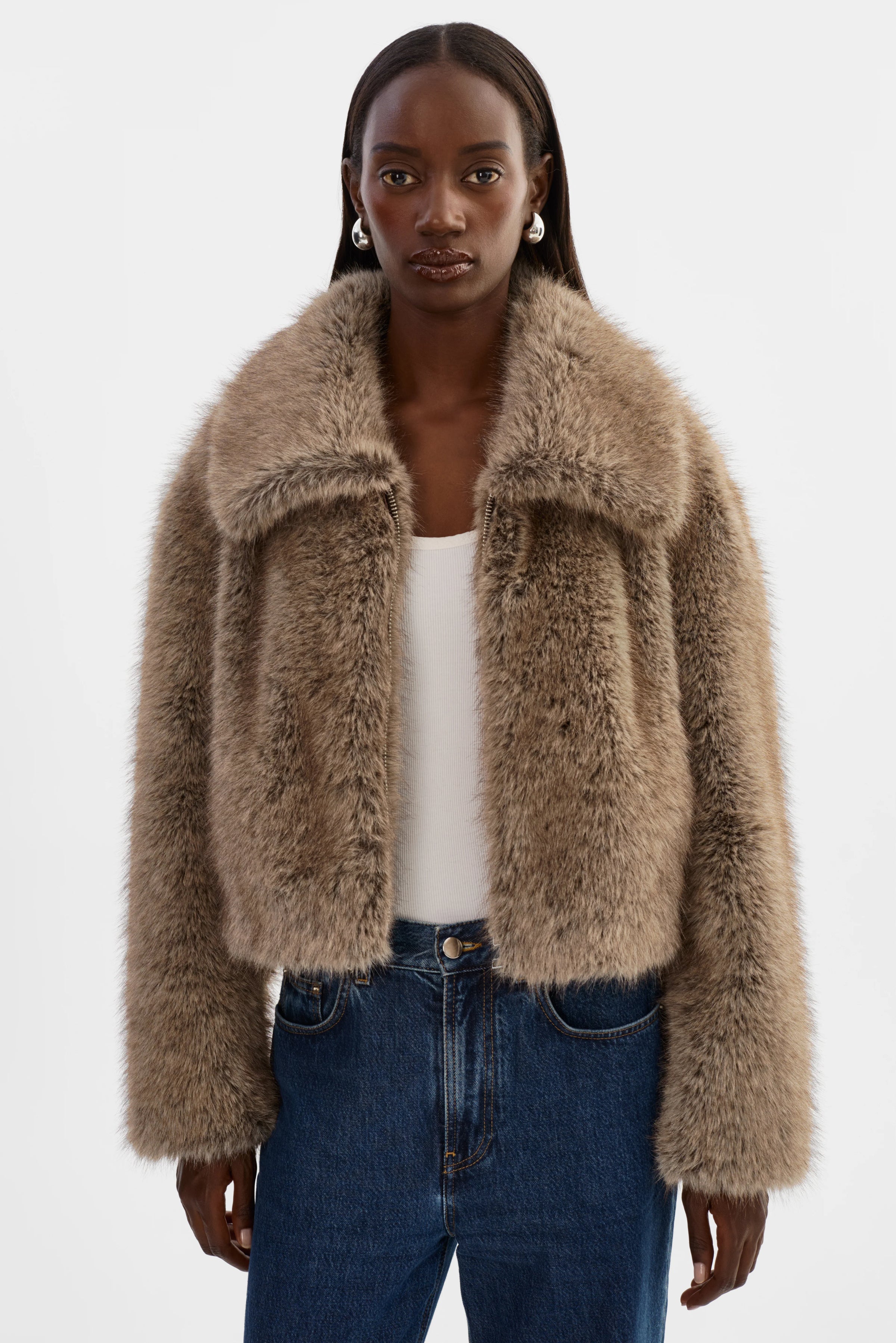 Vintage glamour, redefined. The NOVA Faux Fur Coat is crafted from ultra-soft faux fur in a cropped silhouette that balances plush texture with modern edge. Designed with a zip-front closure and exaggerated collar, it's the perfect statement layer to elevate everything from denim to night-out looks.