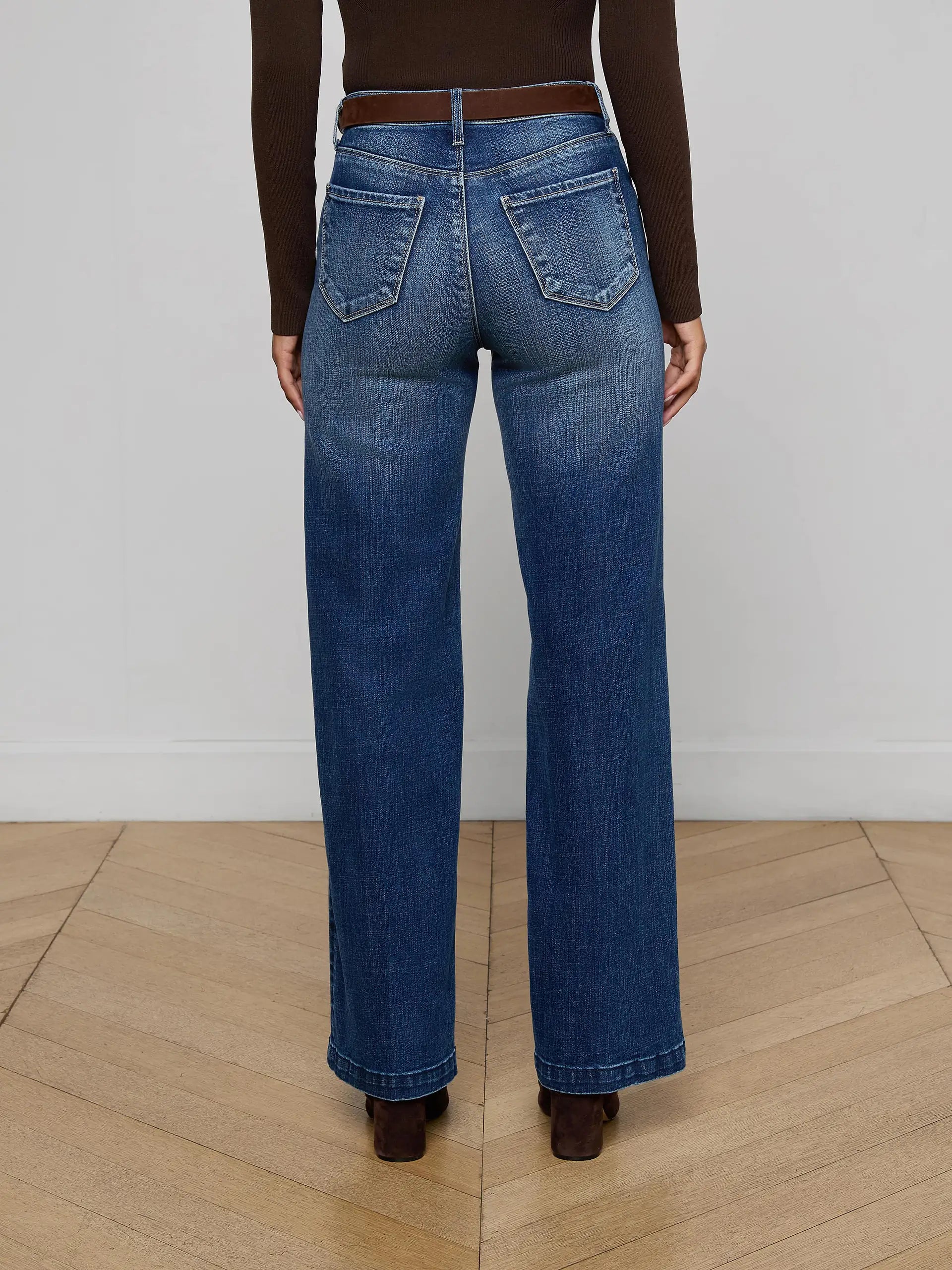 Fitted and flattering through the hips, the Scottie is our classic wide-leg jean. A contoured waistband sits securely at the natural waist without gaping. Now in an aged medium wash.