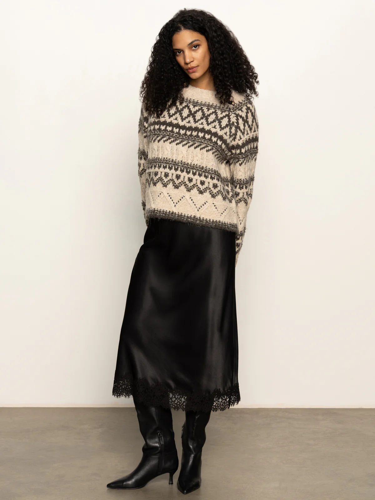 Add a flirty twist to your outfit with our Slip Skirt w/ Lace in Black. Silky smooth and sprinkled with just the right amount of lace, it’s like your secret style weapon for effortless chic.