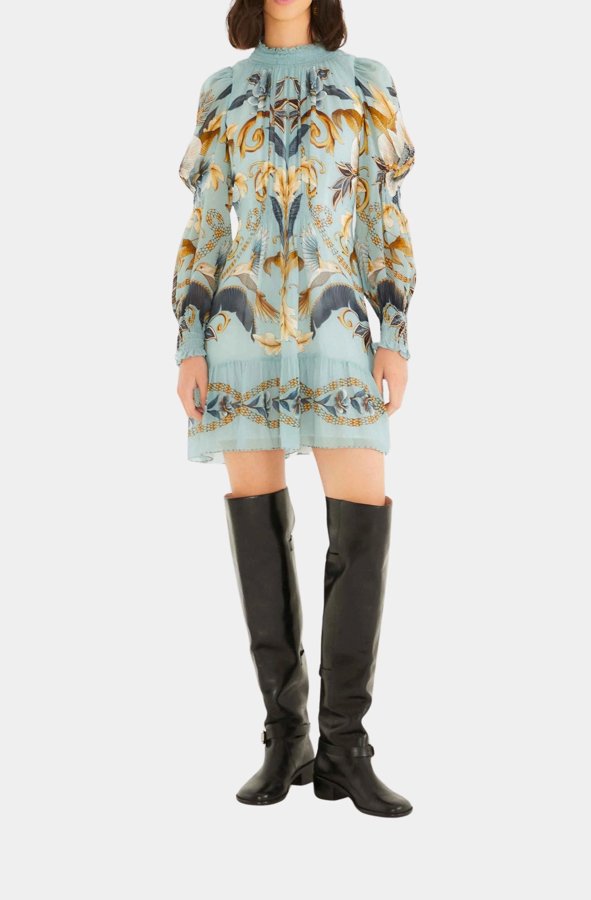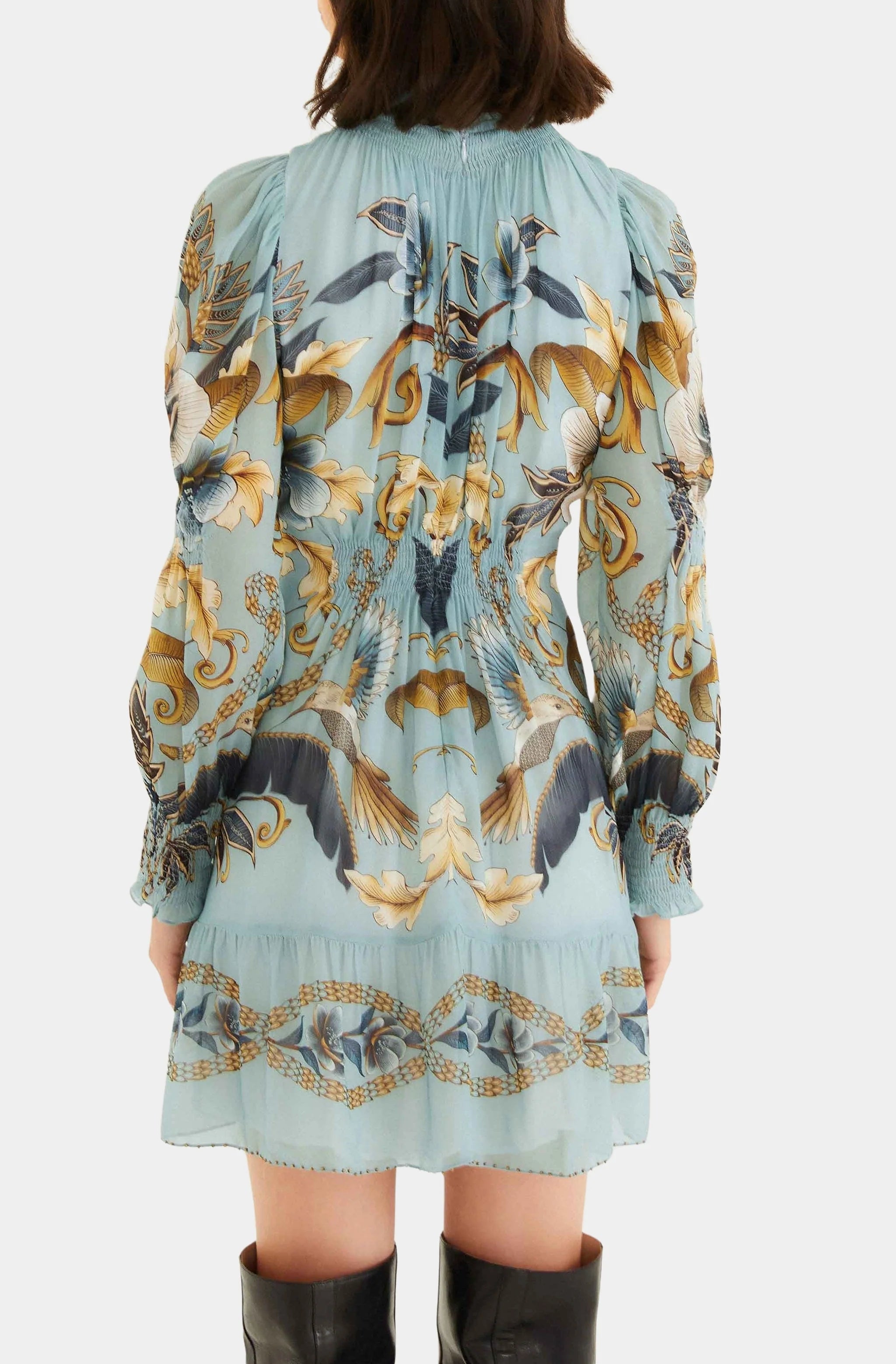 Step into a world of elegance with the Snake Garden Blue Long Sleeve Mini Dress. This captivating piece features a vibrant print that exudes charm and sophistication. The smocked neck and cuffs add a touch of refinement, while the long sleeves provide a graceful silhouette. Perfect for any occasion, this mini dress combines style and comfort effortlessly. Embrace the allure of this unique design and make a statement wherever you go.