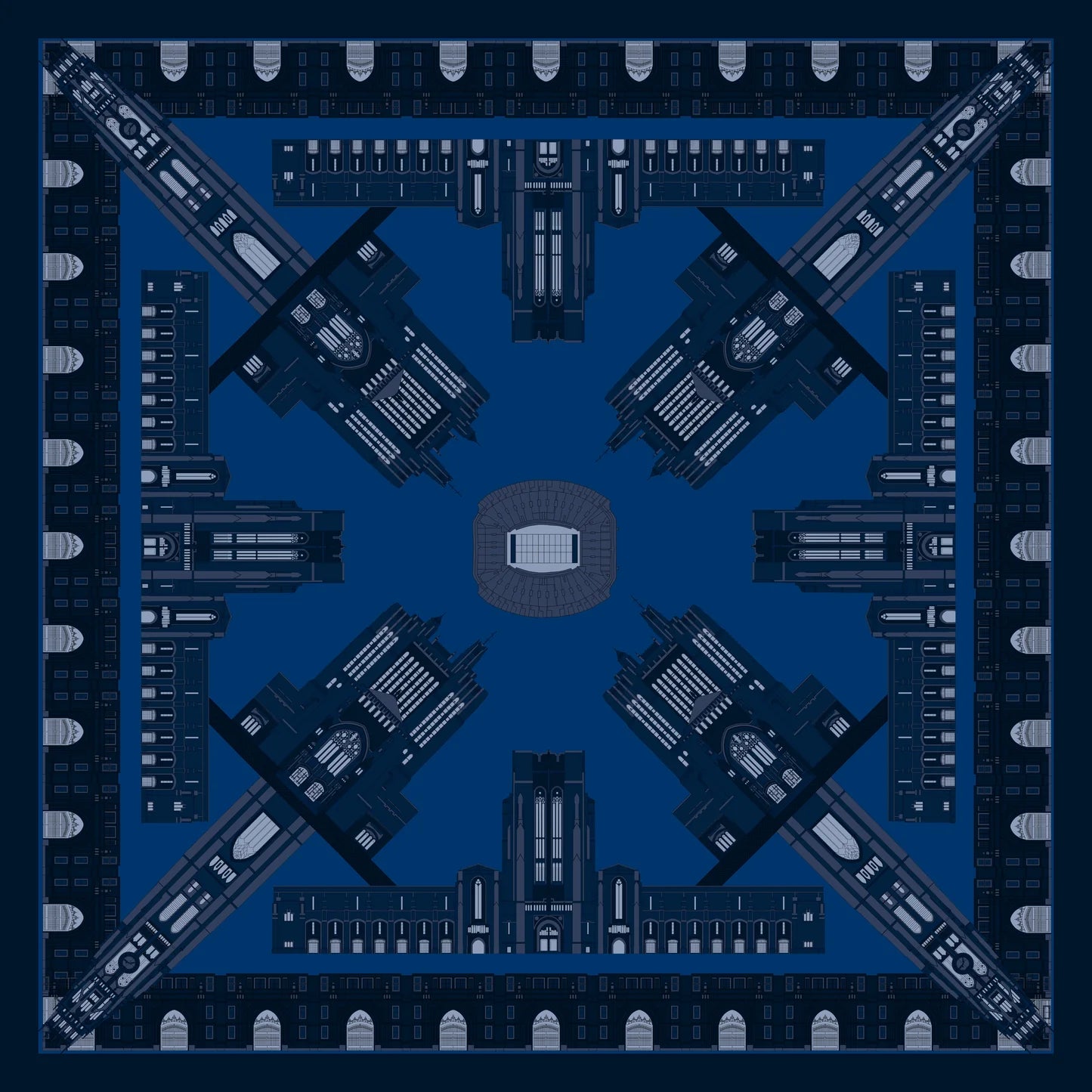 This custom silk scarf draws inspiration from the iconic Gothic architecture and timeless charm of New Haven’s most historic campus, offering a sophisticated, logo-free way to honor your connection to the place.