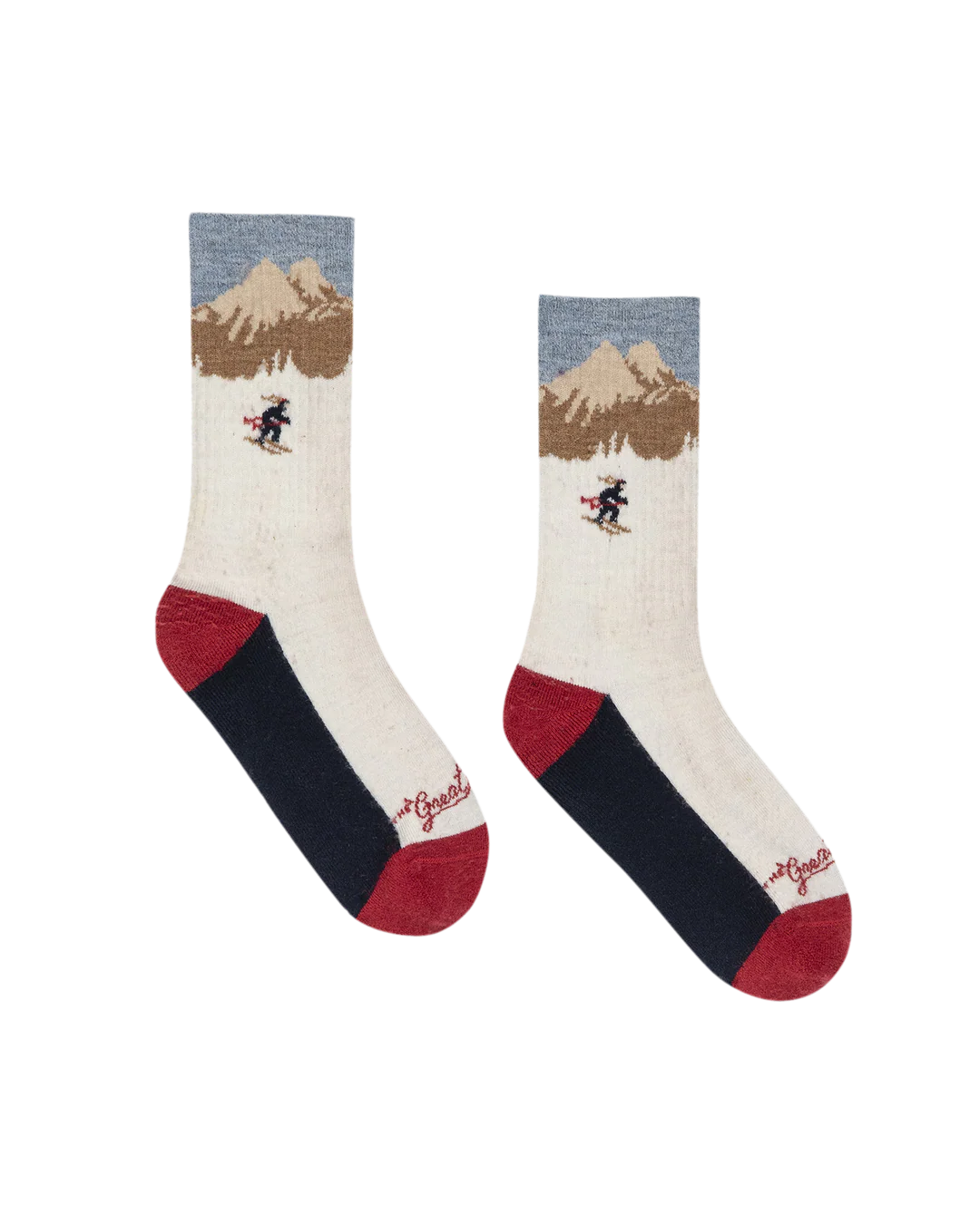 Designed for all day comfort and knit with a classic mountain landscape from luxurious merino wool yarn. Featuring a terry knit footbed that provides cushion in every step.