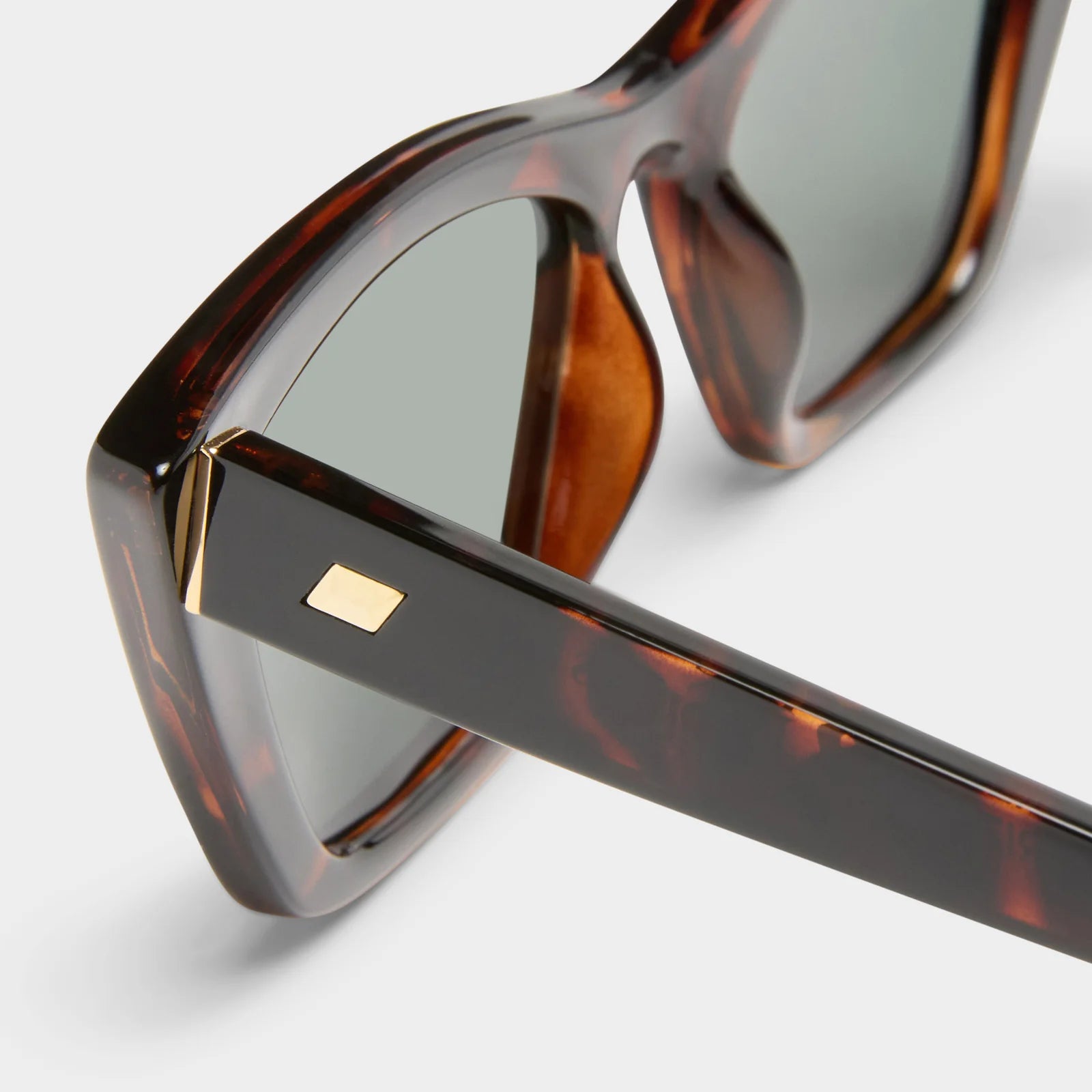 • Finished in a dark tort frame with khaki mono polarized lenses.