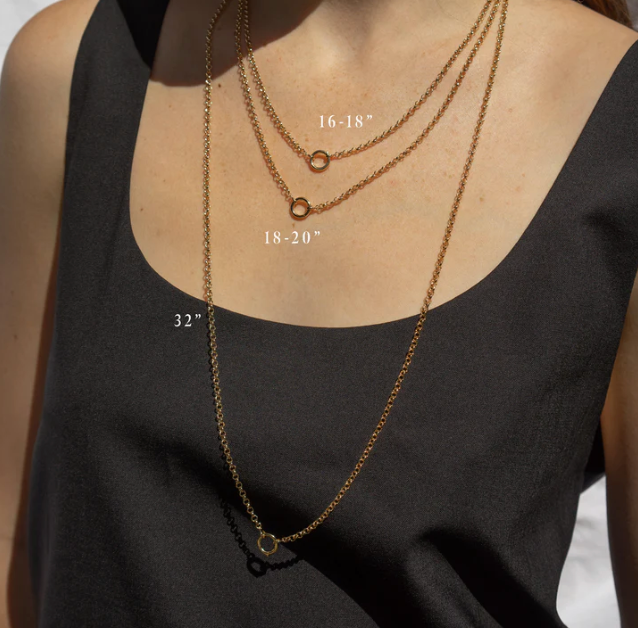 A cool rounded link chain necklace in three lengths with a center hinge clip that fits all THATCH charms and pendants.