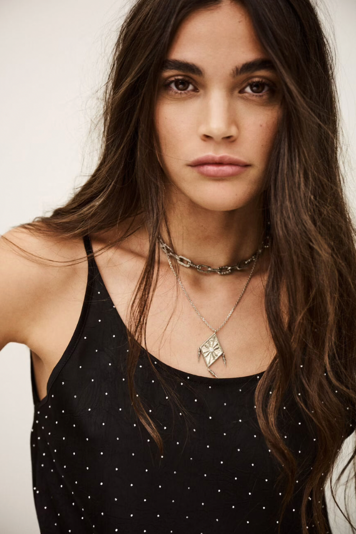 With slender straps and a dramatic v-neckline in the back, the silhouette is both minimal and bold, making it a standout layer for day or night.