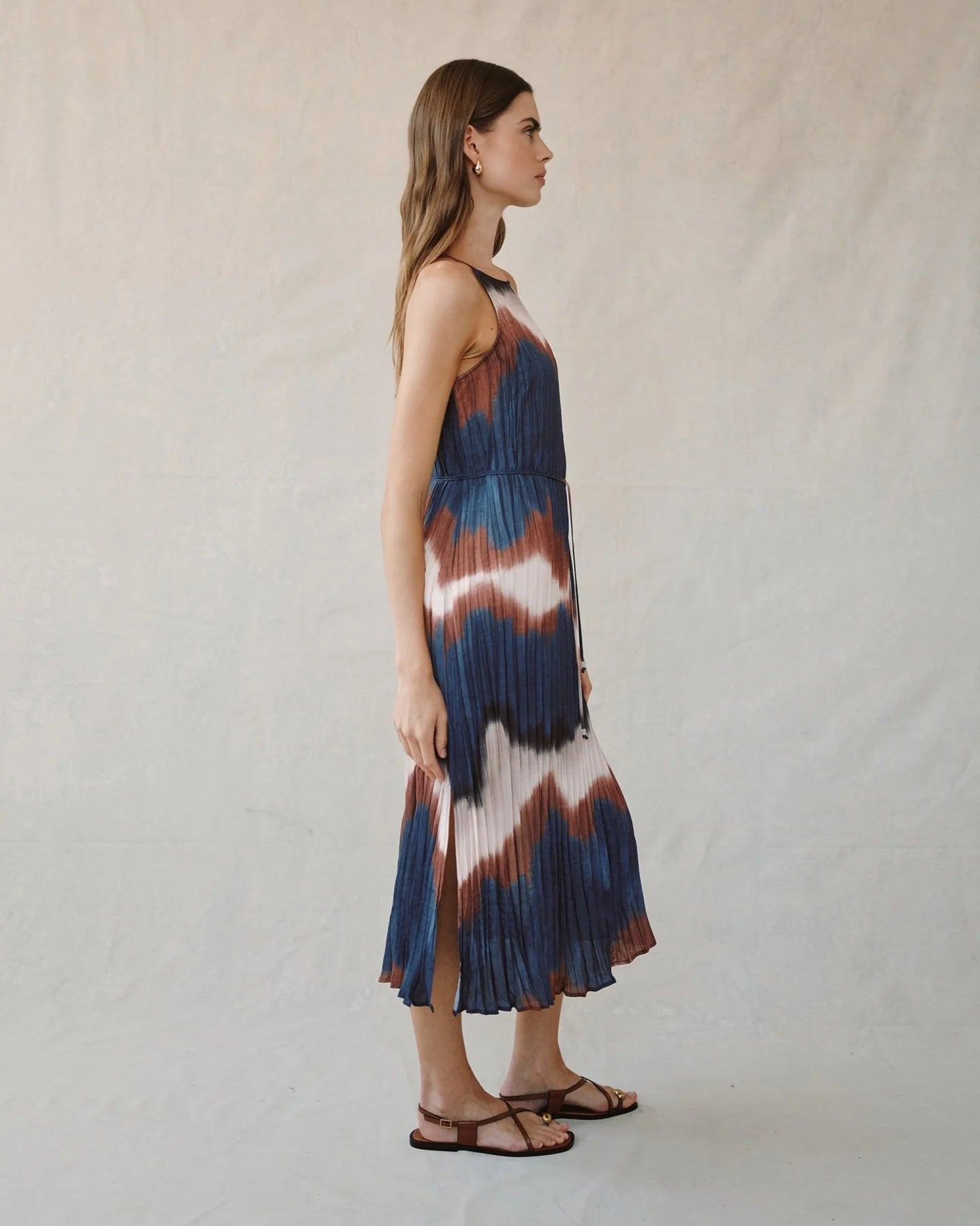 Soft and sophisticated, the Pleated Midi Dress with Side Slits is a modern silhouette designed for transitional seasons and elevated everyday wear.