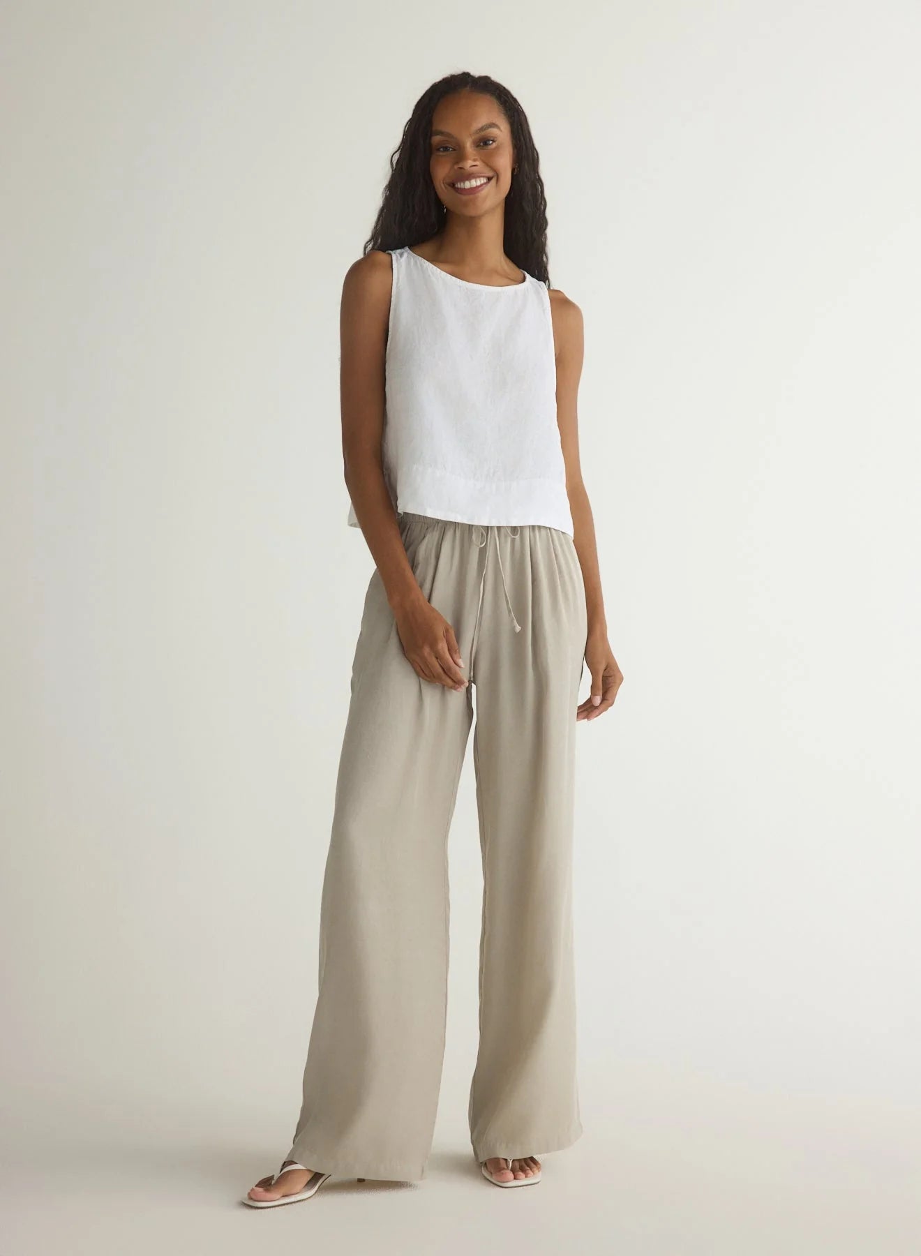The Wide Leg Pleated Pant is an effortlessly elevated essential, combining everyday ease with a polished silhouette.