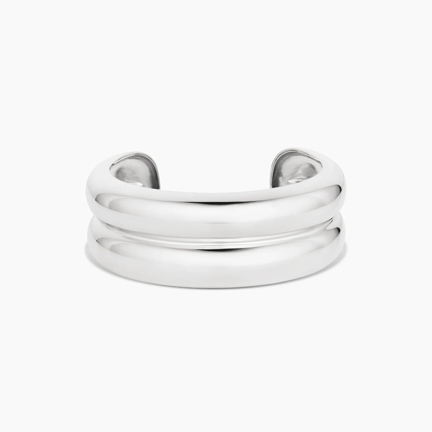 Rhodium plated large double cuff bracelet.