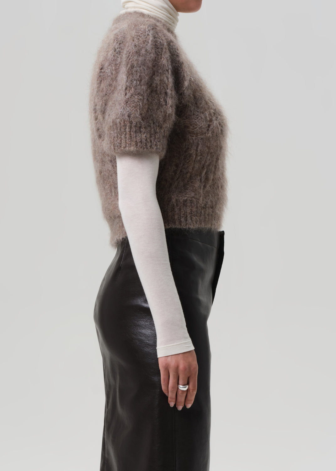 The Odette Puff Sleeve is a feminine update to a classic knit, crafted from a soft wool blend with natural texture and airy alpaca. Subtle volume at the shoulder adds shape and ease—equally chic layered under tailoring or worn on its own.