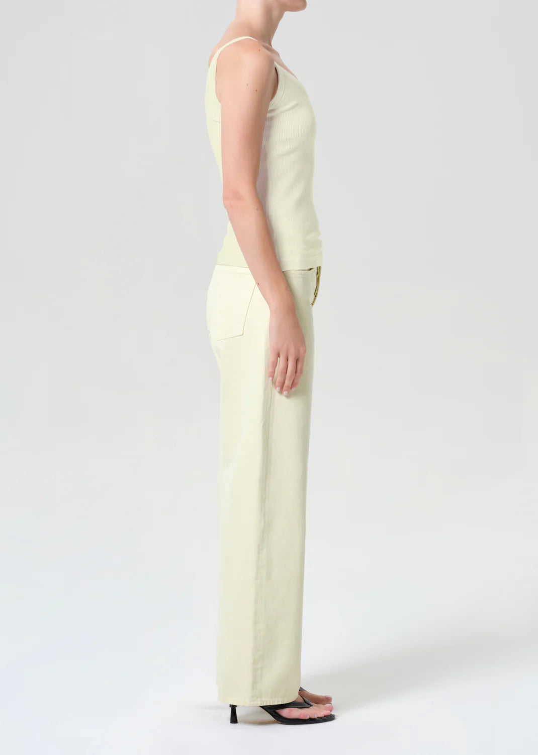 The Arc Jean – 32" introduces a soft pop of color to a sculptural classic. Designed in a light faded yellow wash with subtle green undertones, it features a mid-rise waist and a relaxed wide-leg silhouette that feels effortless and refined. Crafted from breathable regenerative cotton denim with a naturally soft, luxurious feel, it delivers all day comfort while maintaining a clean, polished look. Style it with a neutral tank and slides for an easy spring pairing, or dress it up with a crisp white shirt for an elevated tonal moment.