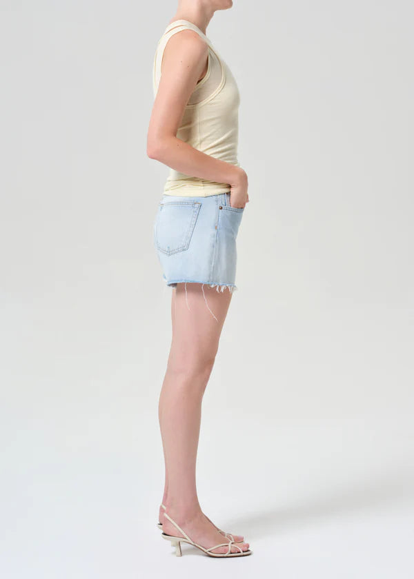 Looks Like: Pale bright indigo denim short