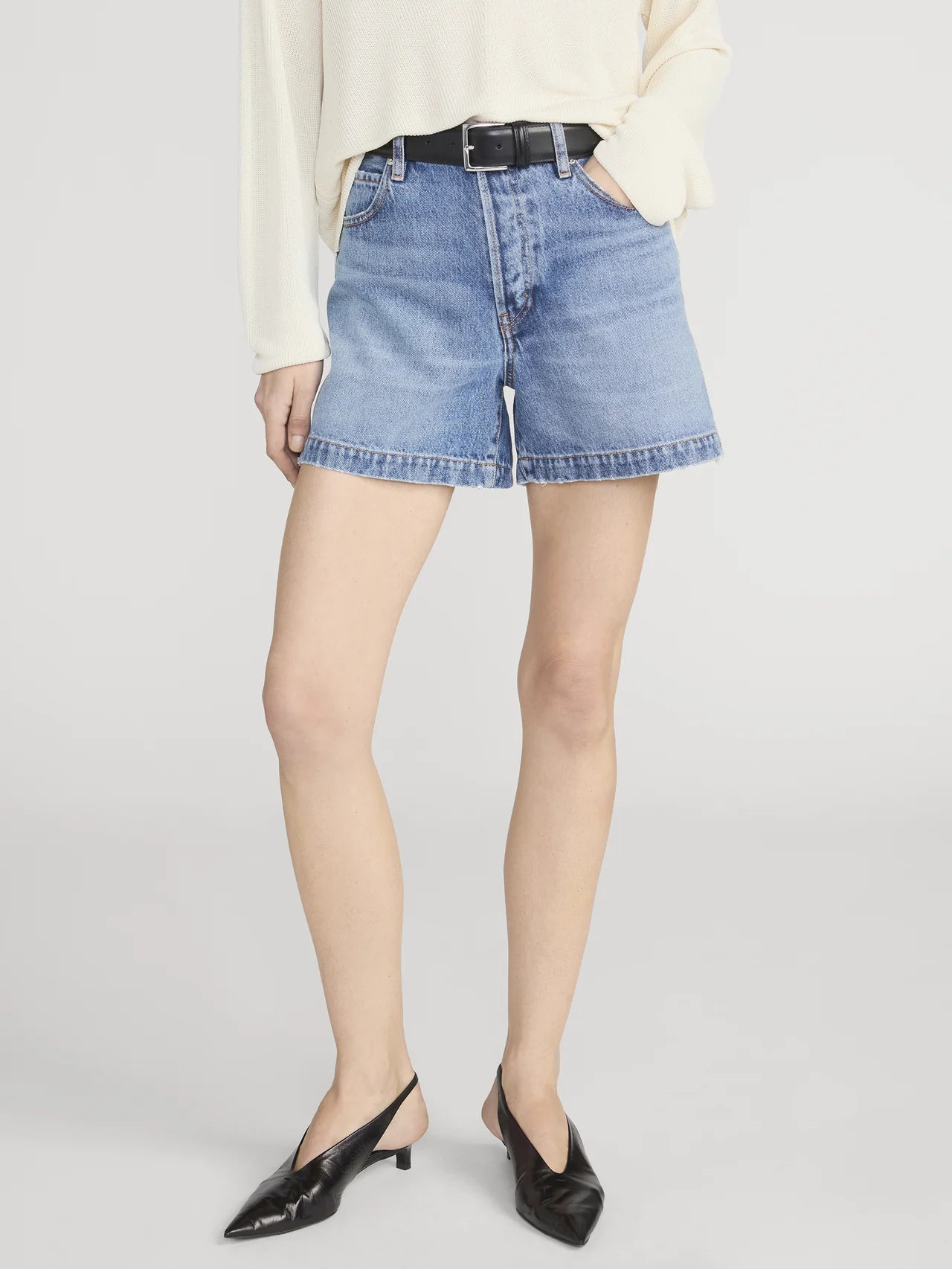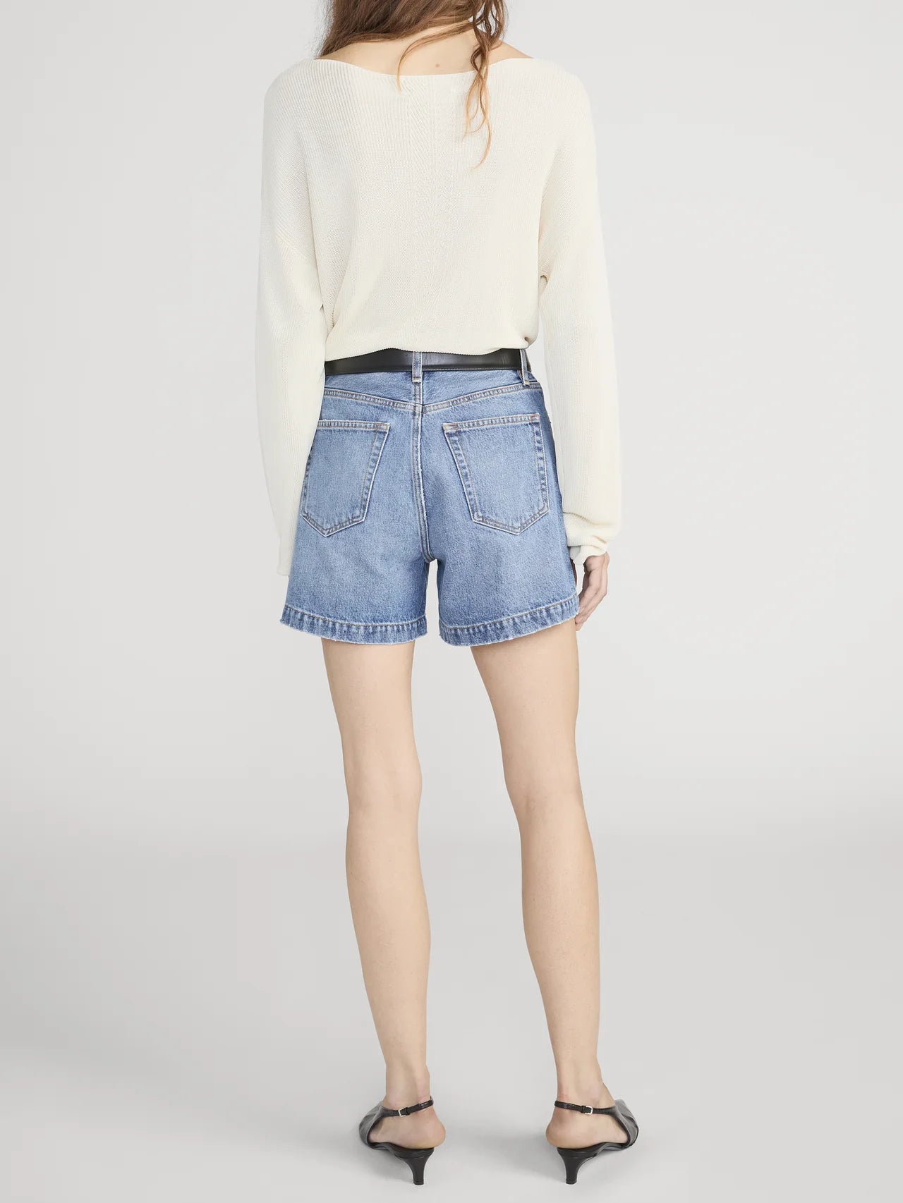 This high-rise tailored short has a just-right 4" inseam. A flattering, effortless fit, designed for repeat wear. Crafted in pure regenerative cotton.