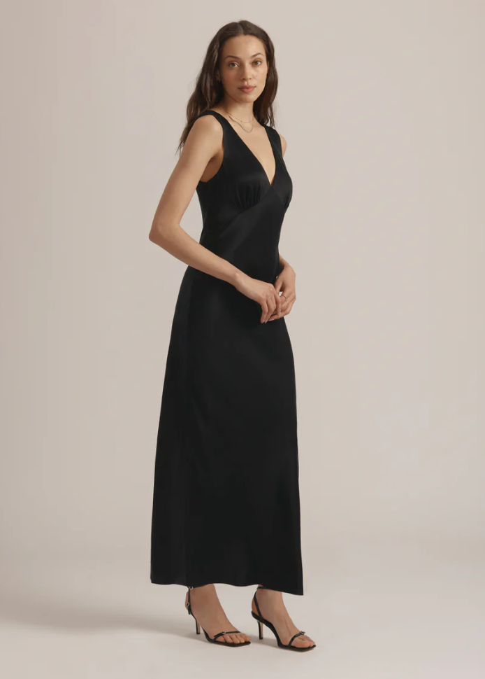 A dress that works for, well, any day and anytime. The form-fitting bodice is balanced by a V-neck and a bias-cut skirt. Fully lined for comfort, it’s crafted from a soft, breathable cupro-viscose blend. At 50" from shoulder to hem, it's a favorite you'll reach for again and again.