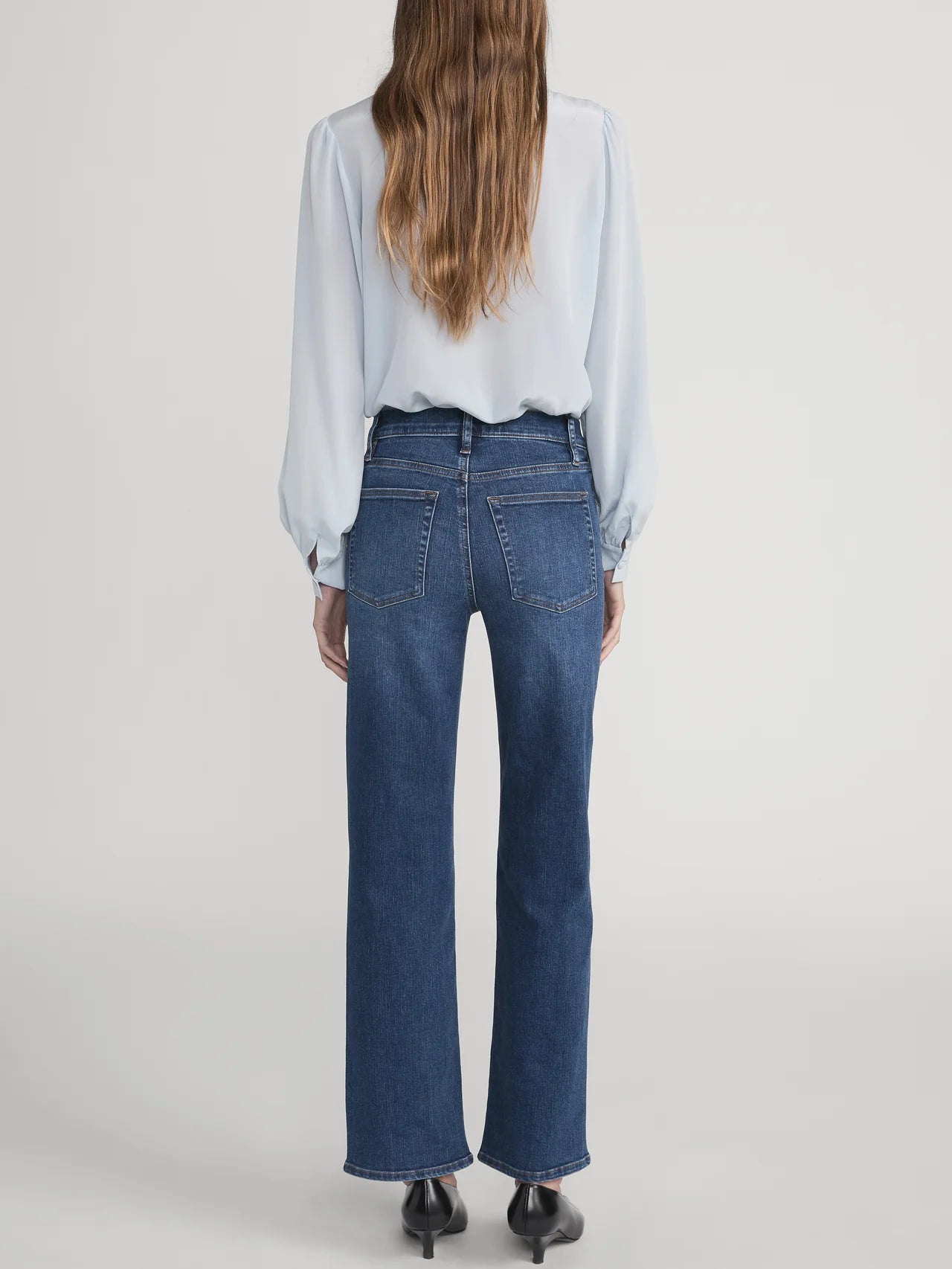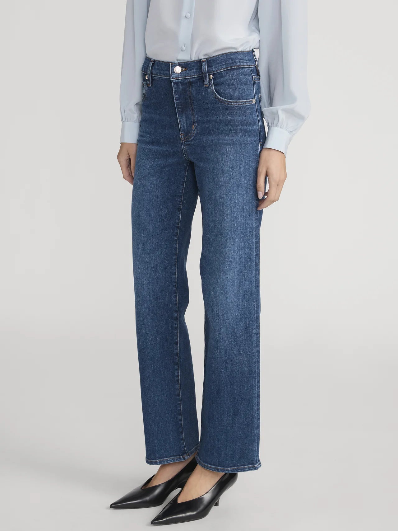 Relax in your next must-have super-stretch jean. Featuring a true mid-rise, ankle-length inseam, frayed raw hem and slim wide leg, the Mellow is emblematic of the next generation of FRAME.