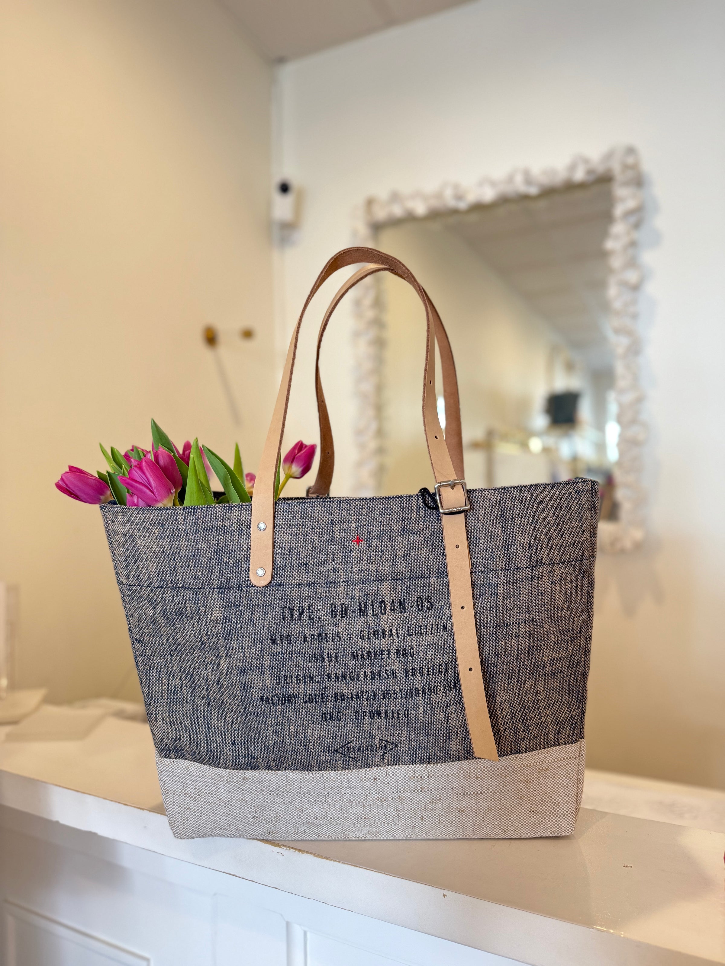 Make a statement with a Market Bag in natural jute with an adjustable leather handle. This large bag features a soft, adjustable leather handle, a tough and spill-proof inner lining, and a solid look for lovers of all things colorful. It's an essential item for every-day adventures.