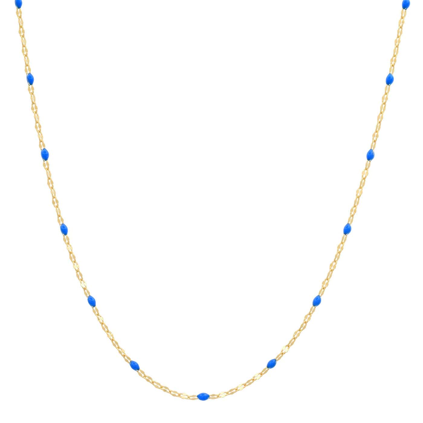 Introducing the perfect piece of statement jewelry! Our Gold Vermeil Sparkle Chain with Enamel Stations necklace is sure to make a lasting impression with its richly colored enamel stations, as well as its shimmering gold chain. Show off your style with this unique and beautiful piece, available in multiple color combinations to match any outfit. Dare to be different and stand out with this necklace!