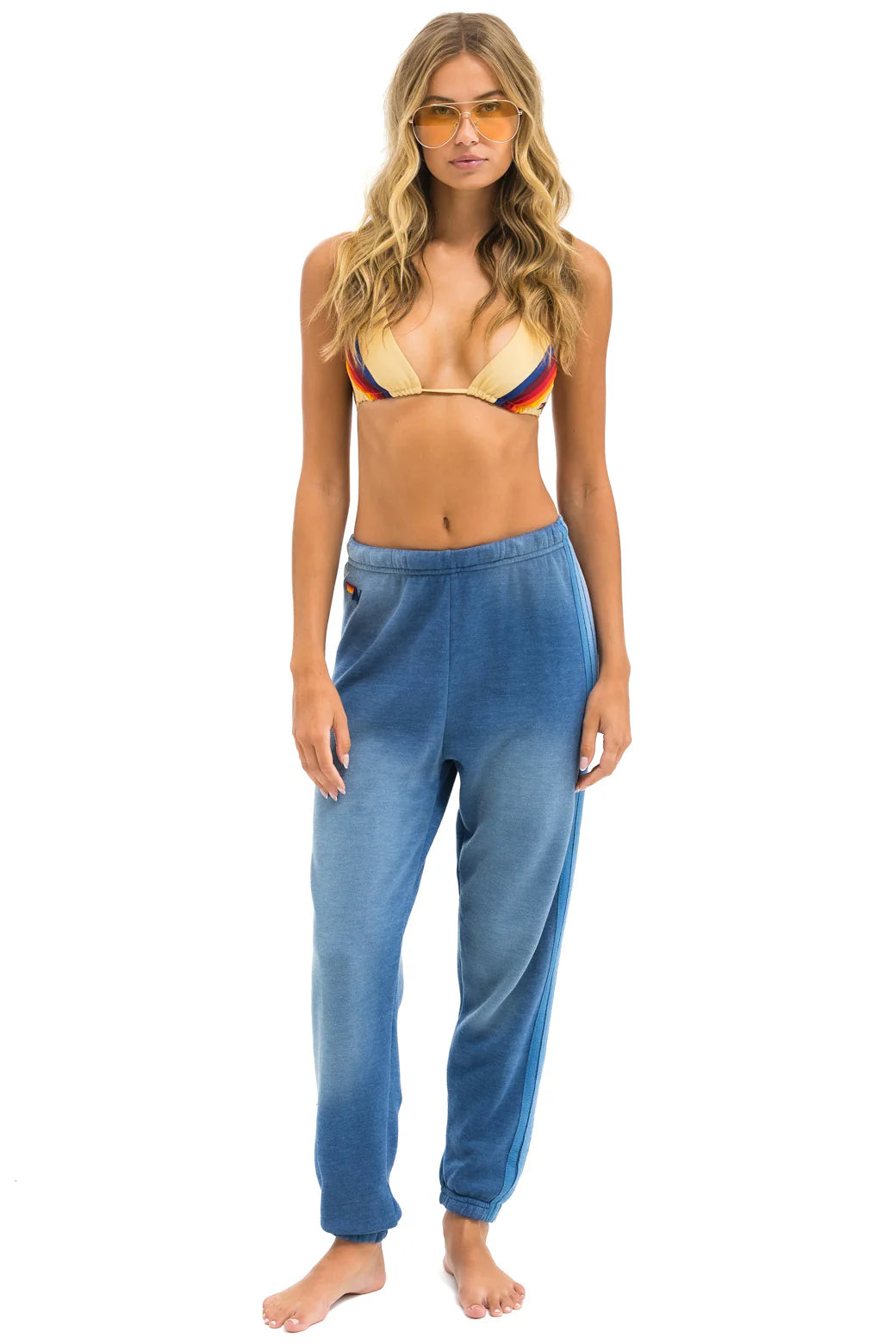 Turn heads in these sweatpants with the Aviator Nation 5 stripe stitch work down the entire leg. Pair it up with your favorite 5 Stripe Hoodie and you're set. The most comfortable sweatpants you'll ever own.