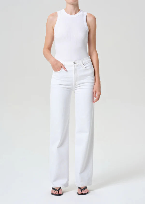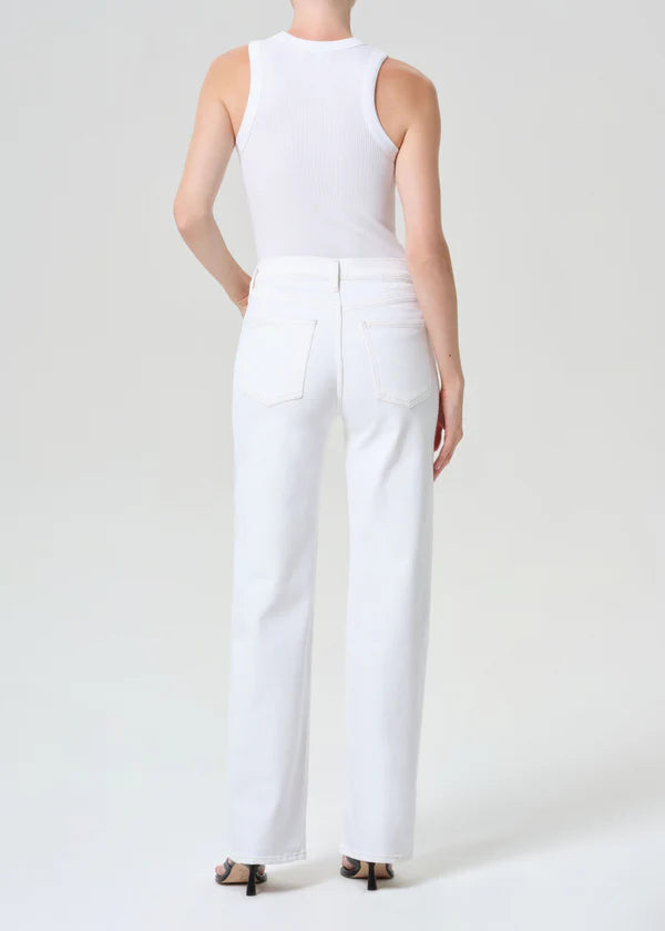 The Harper is crafted from regenerative cotton with extra stretch for ultimate comfort. Featuring a relaxed mid-rise fit, it has a flattering square top block and a straight leg. Made in white denim, it offers a crisp, fresh look that's both versatile and stylish. Perfect for pairing with everything from casual tees to elevated tops, this piece is an essential wardrobe staple.