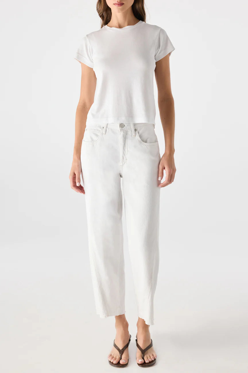 A mid rise, loose fit, horseshoe style jean with a modern twist. Designed to be full in the leg with a curved outseam, cropped ankle, and let down hem, they give off a vintage-inspired vibe. Zip fly.
