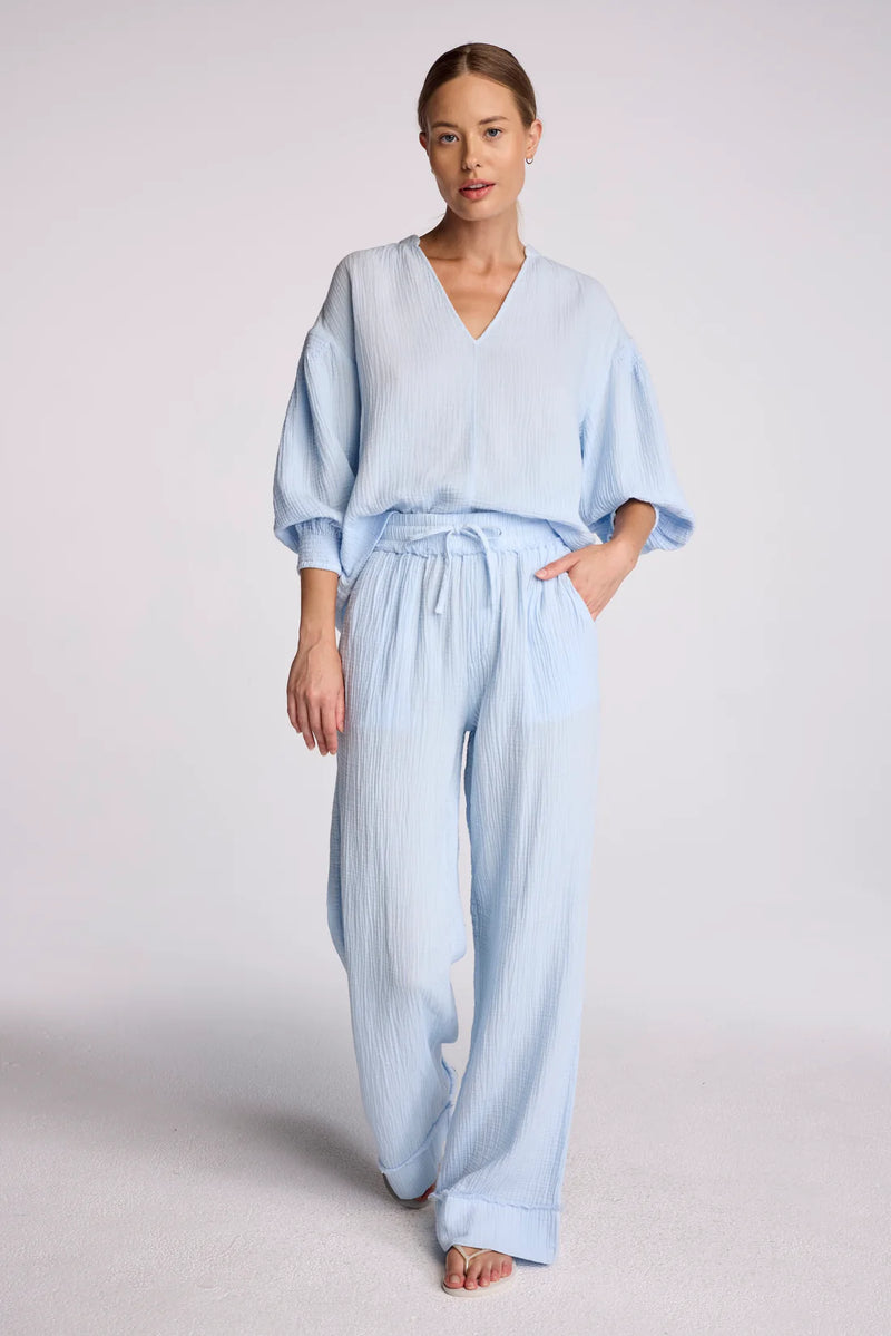 Reintroducing the coveted Thalia Pants—crafted from breathable cotton gauze for ultimate comfort and style. These pants feature a pull-on waist with an elastic drawstring for a relaxed, customizable fit. The relaxed leg is complemented by raw-edged detailing at the waist and cuff, adding a laid-back yet elevated touch. Complete with side seam pockets, they’re the perfect combination of casual and chic. Pair with the Axel Top for a seamlessly effortless spring look.