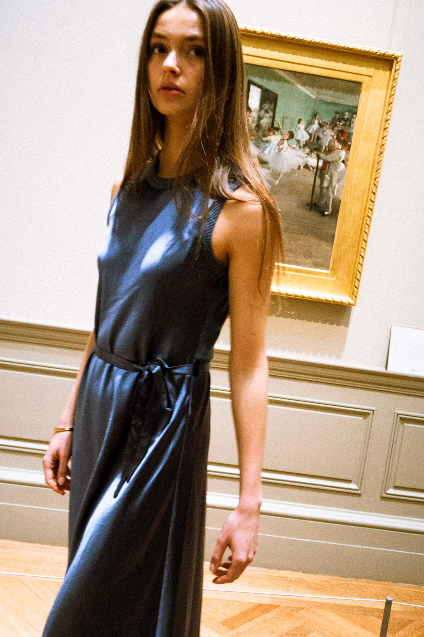 Hammered silk maxi from Avéline in romantic French blue. Comes with optional tie belt