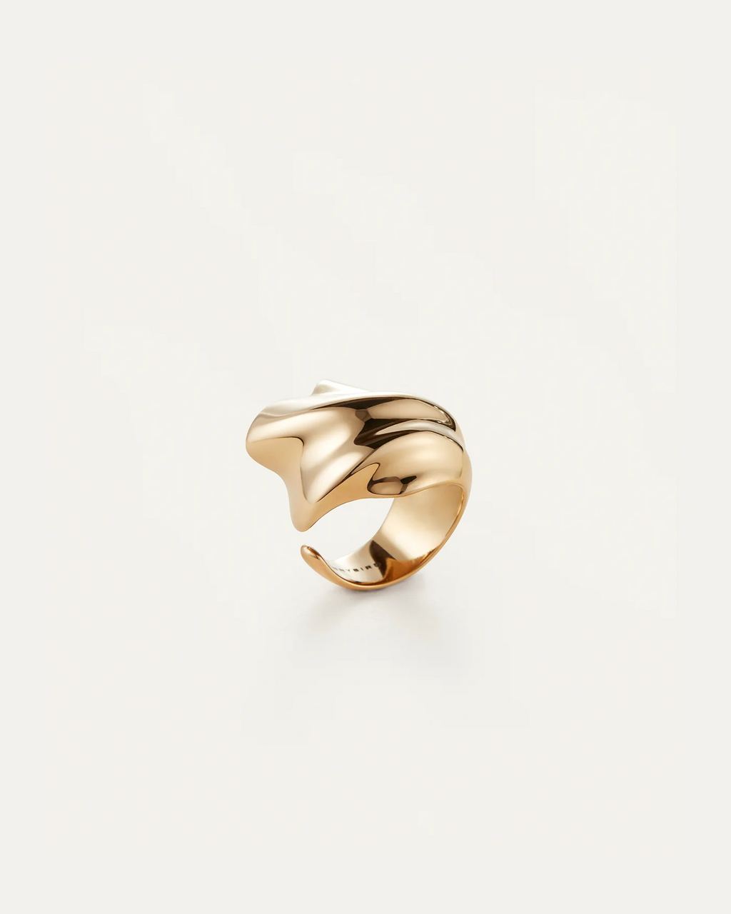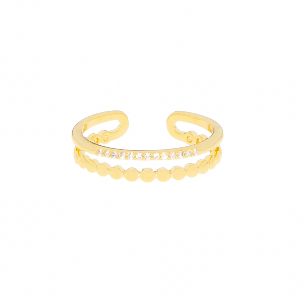 Gold 3mm Ball Stretch Ring with Rectangle Bead