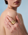 A large sprawling shell curves along the finger, making a statement. This gold ring is water-durable, making it the perfect addition to your jewelry box. Finished in high-polish gold.