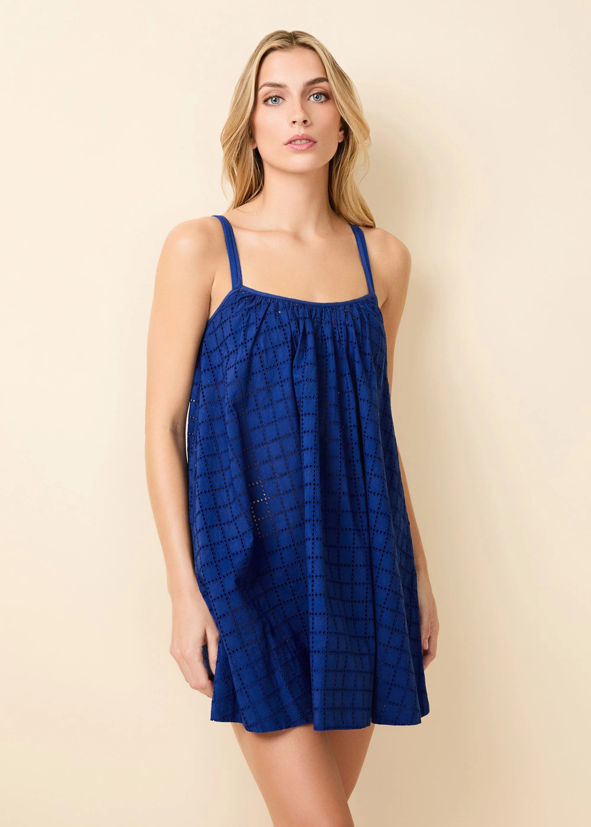 Effortlessly chic and perfect for summer, the Lindsay Dress is crafted from breathable grid eyelet cotton for a light and airy feel. This flattering mini dress features adjustable straps for a customizable fit and side pockets. Whether dressed up or down, it’s the ultimate warm-weather staple.