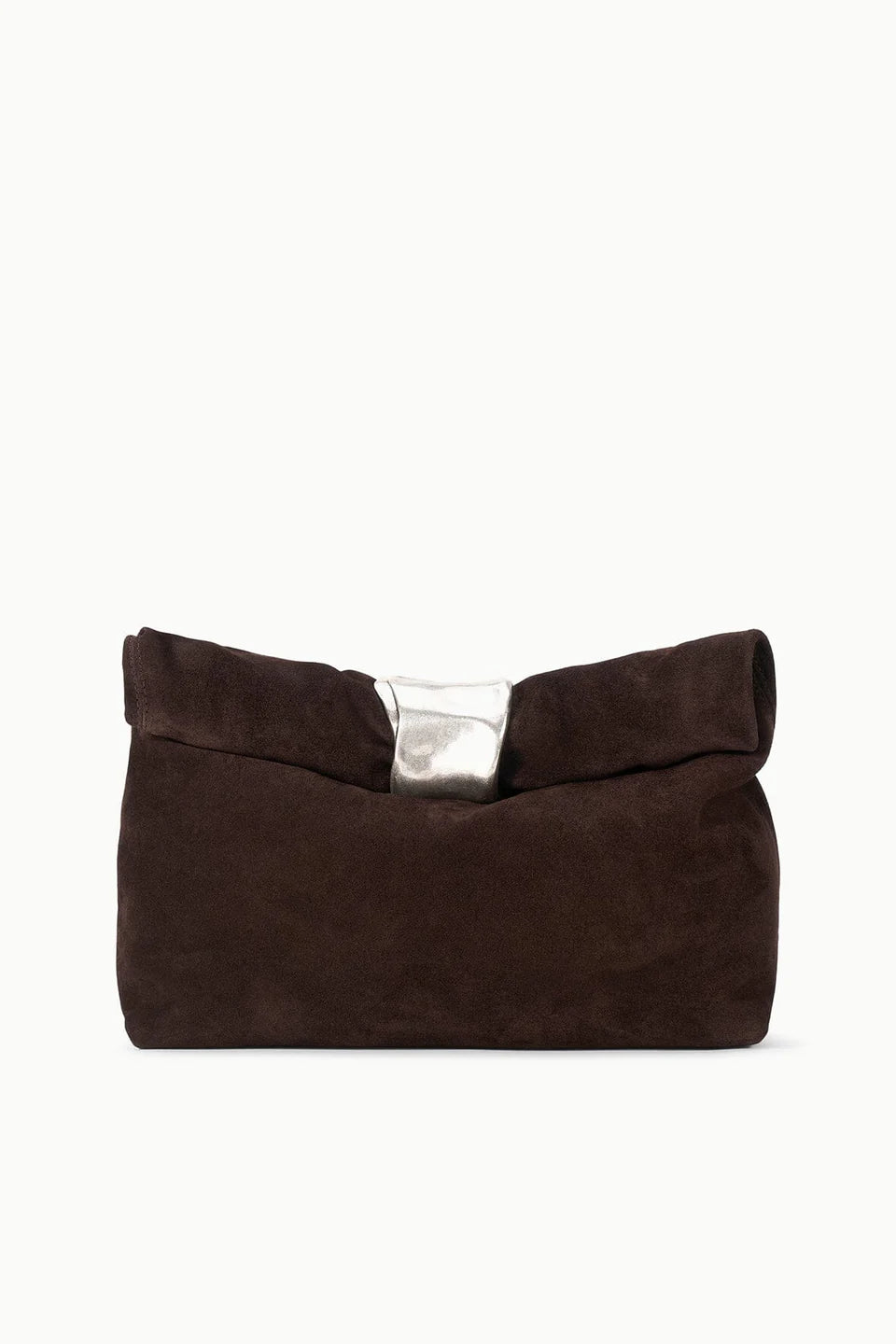 The Cuff Clutch is a slouchy clutch featuring our new organic draped metal cuff hardware. The clutch's interior is easily accessed through the zipper opening at the back and includes a detachable thin leather shoulder strap.
