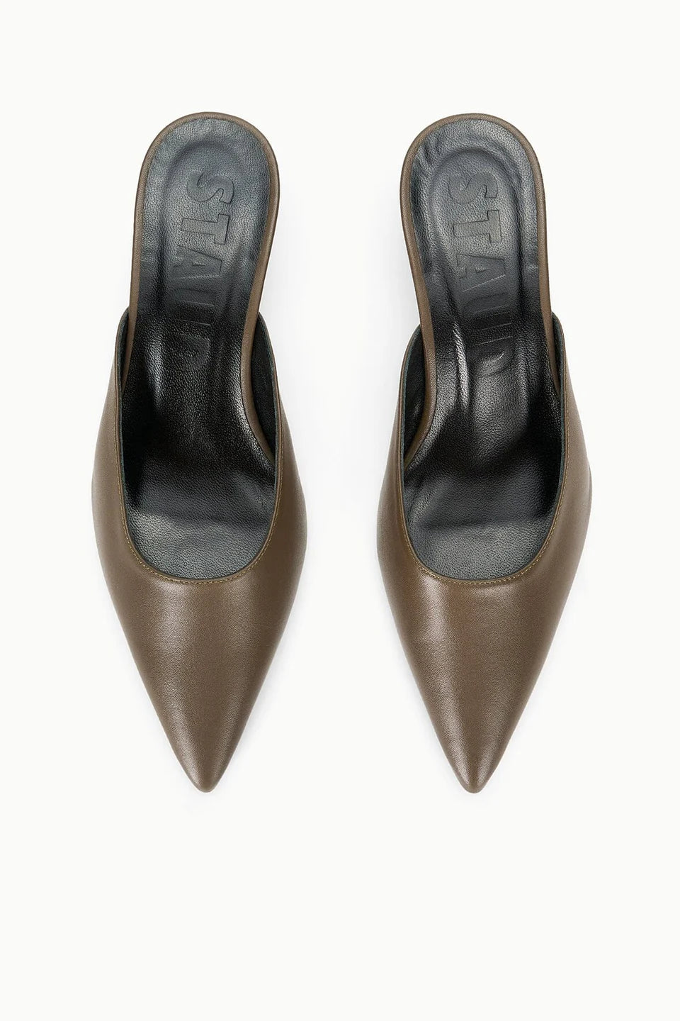 This is a pointed toe, kitten heel mule crafted from smooth nappa leather. The Sebastian Kitten Heel Mule can be dressed up or down.