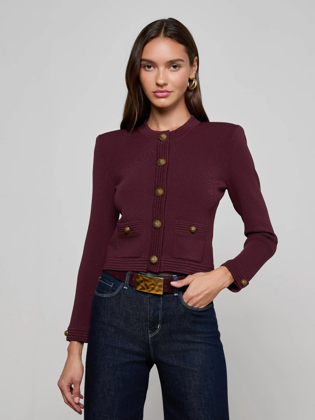 Patsy Cropped Cardigan ~ Malbec/Gold