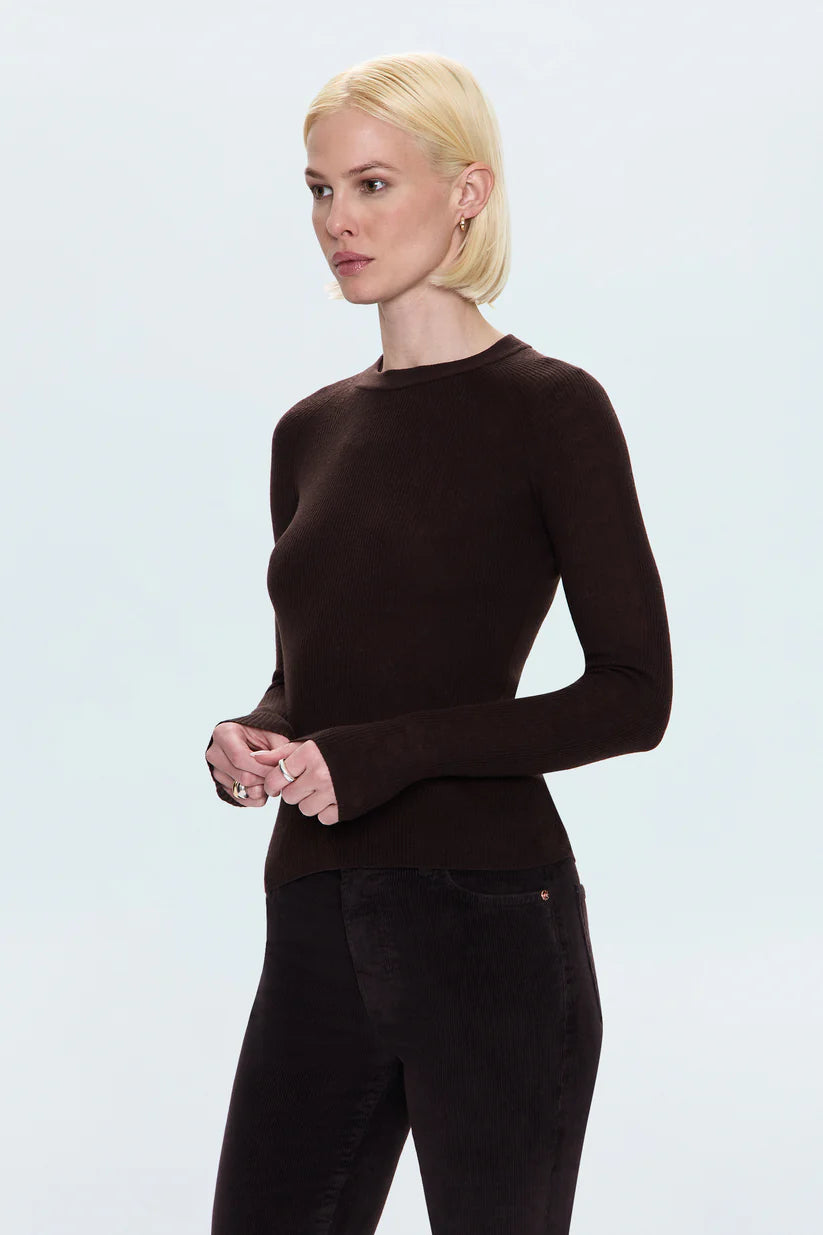 Your perfect fall sweater. Juno delivers featherweight luxury in a timeless, relaxed silhouette that brings understated elegance to any look. The classic crewneck design feels effortlessly refined while the lightweight construction makes it ideal for layering or wearing solo through transitional seasons. Crafted from an elevated blend of 60% merino wool and 40% PVA that feels impossibly soft yet maintains its expert shape. Mocha brings warm sophistication in the rich brown that's defining this season—perfect for anchoring any autumn look.