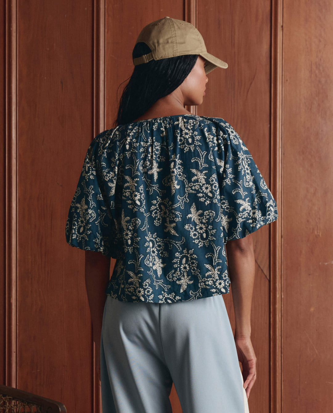 The Blythe Top is an easy pullover style that recalls vintage craftsmanship and everyday wear. Designed with an open scoop neckline, it features voluminous puff sleeves with elasticated cuffs