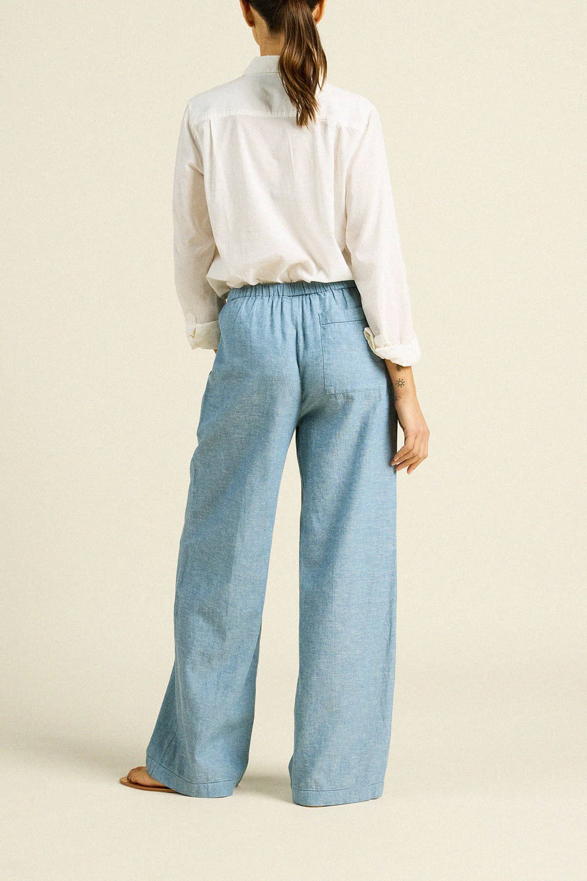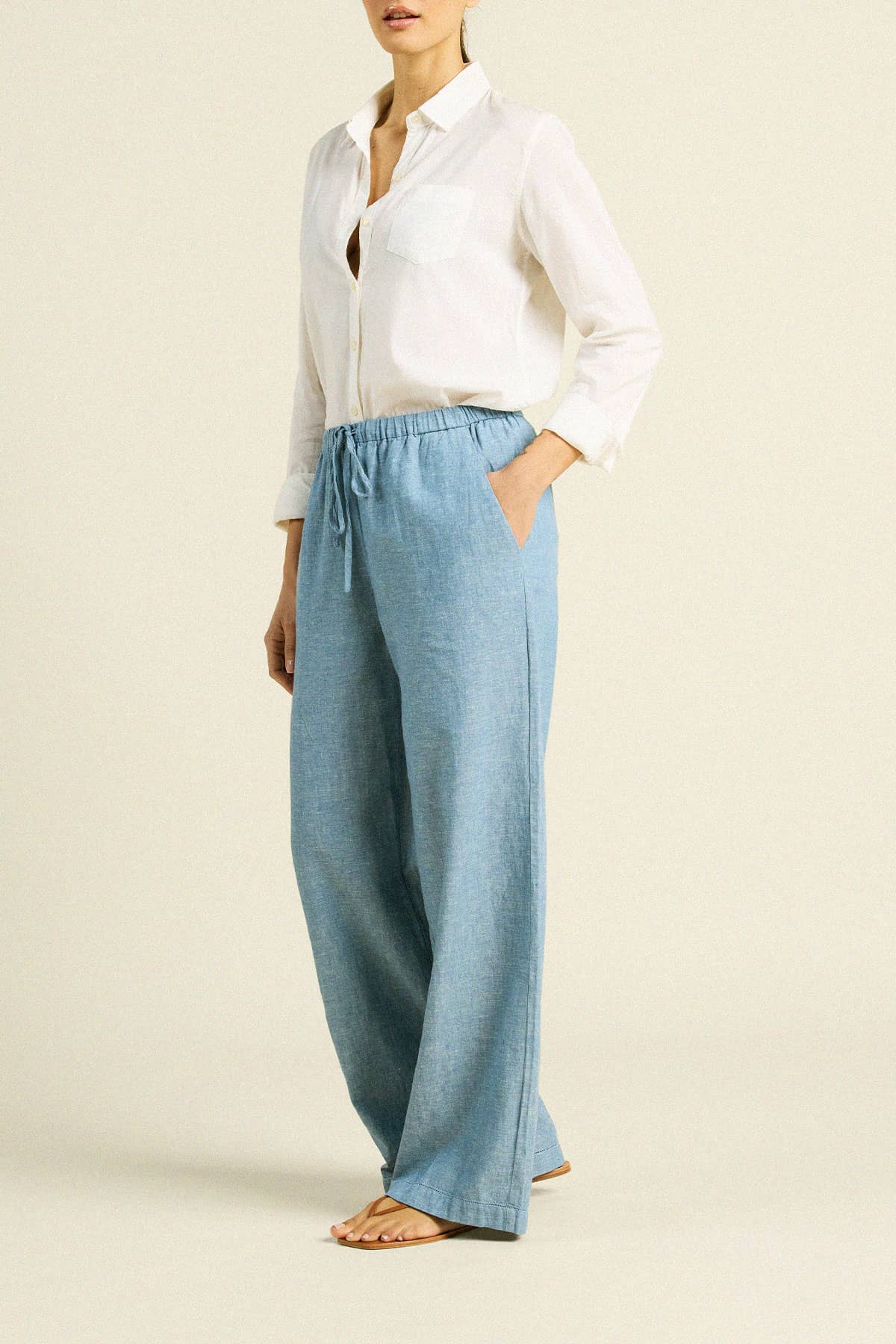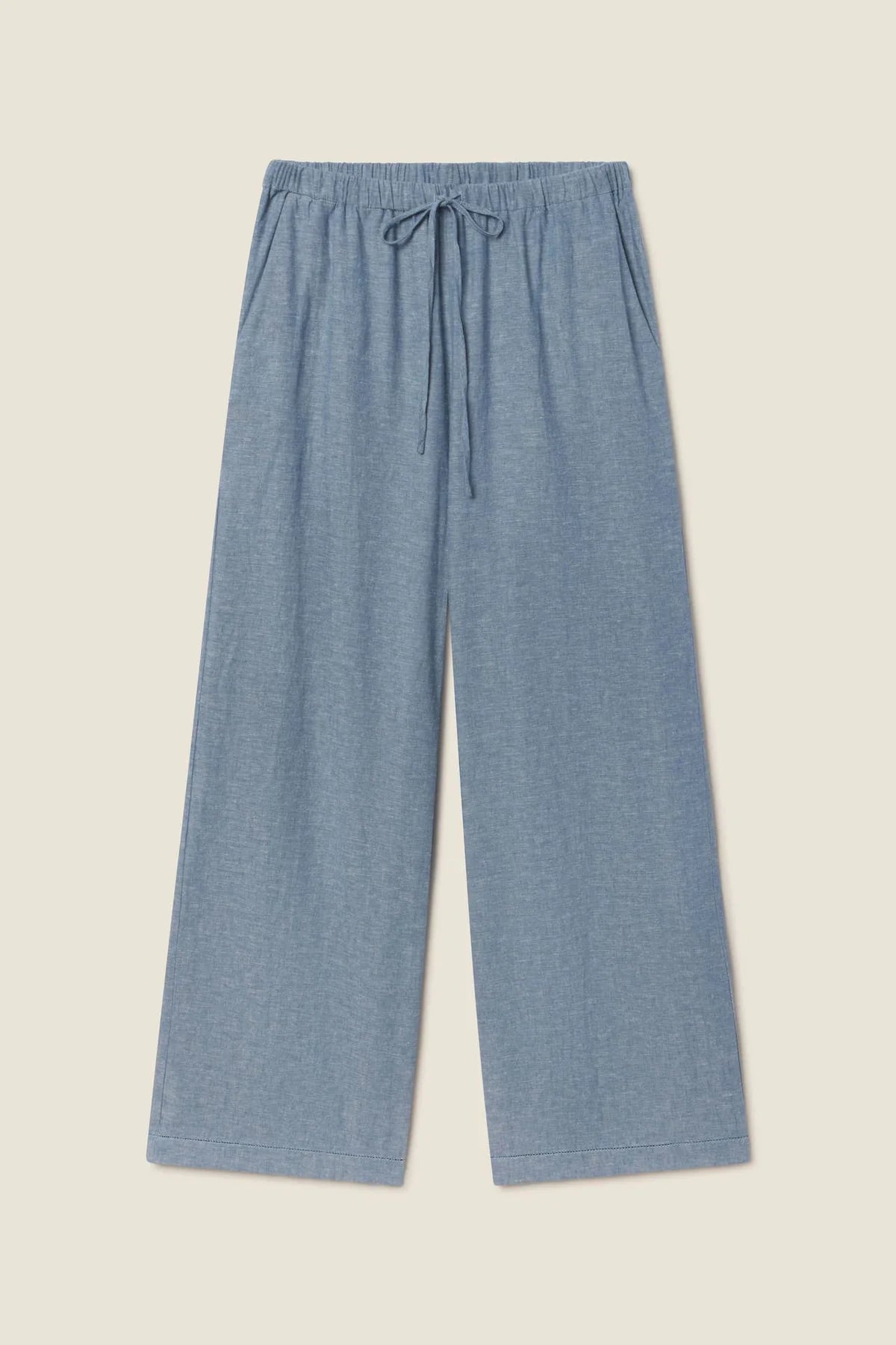 The Vera Pant is a full-length pant with a flattering straight let cut, side pockets and a slim drawstring waist casting with elastic for a comfortable fit. Shown here in Vintage Indigo and made from our soft cotton linen.