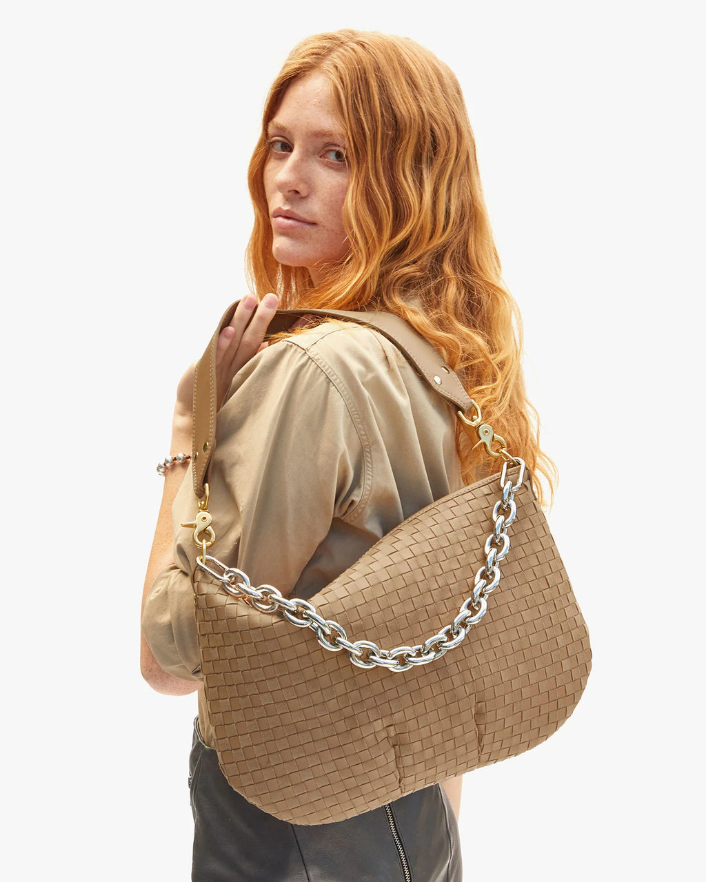 Moyen Messenger ~ Mahogany Nappa & Suede Woven Checker