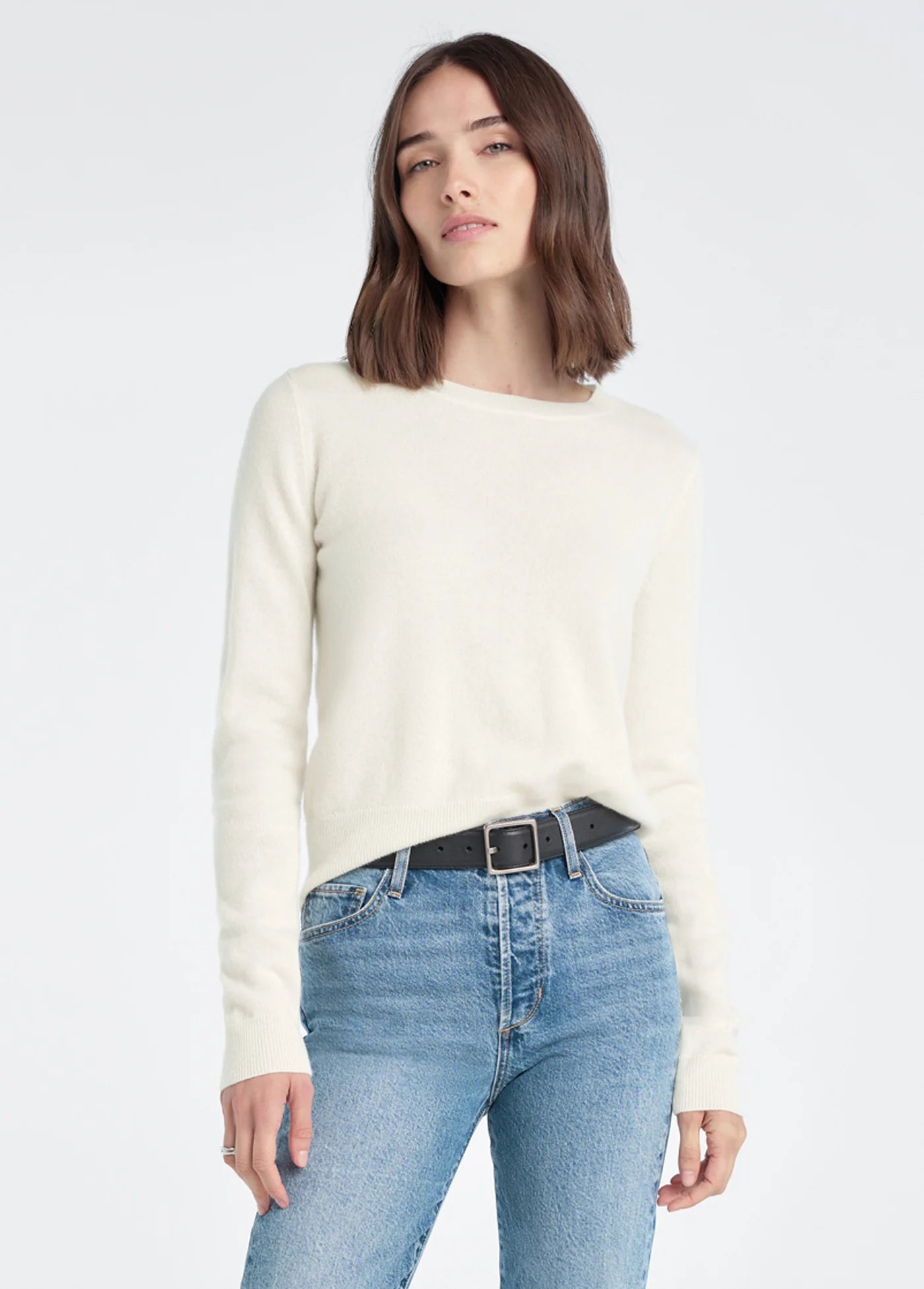 We took the softest, most luxe cashmere and made a new favorite for everyday wear. The Favorite Cashmere Crew has a relaxed, slim fit with rib trim and tonal Favorite Daughter embroidery on the sleeve cuff.
