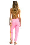 Our fan fave neon pink five stripe sweatpants now with neon rainbow stripes are the perfect pants to rock this spring.