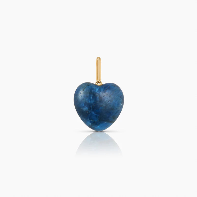 Our Gemma puffy heart in apatite is a smooth amulet to add a little bit of color to any look. It's the perfect addition to your everyday layers.