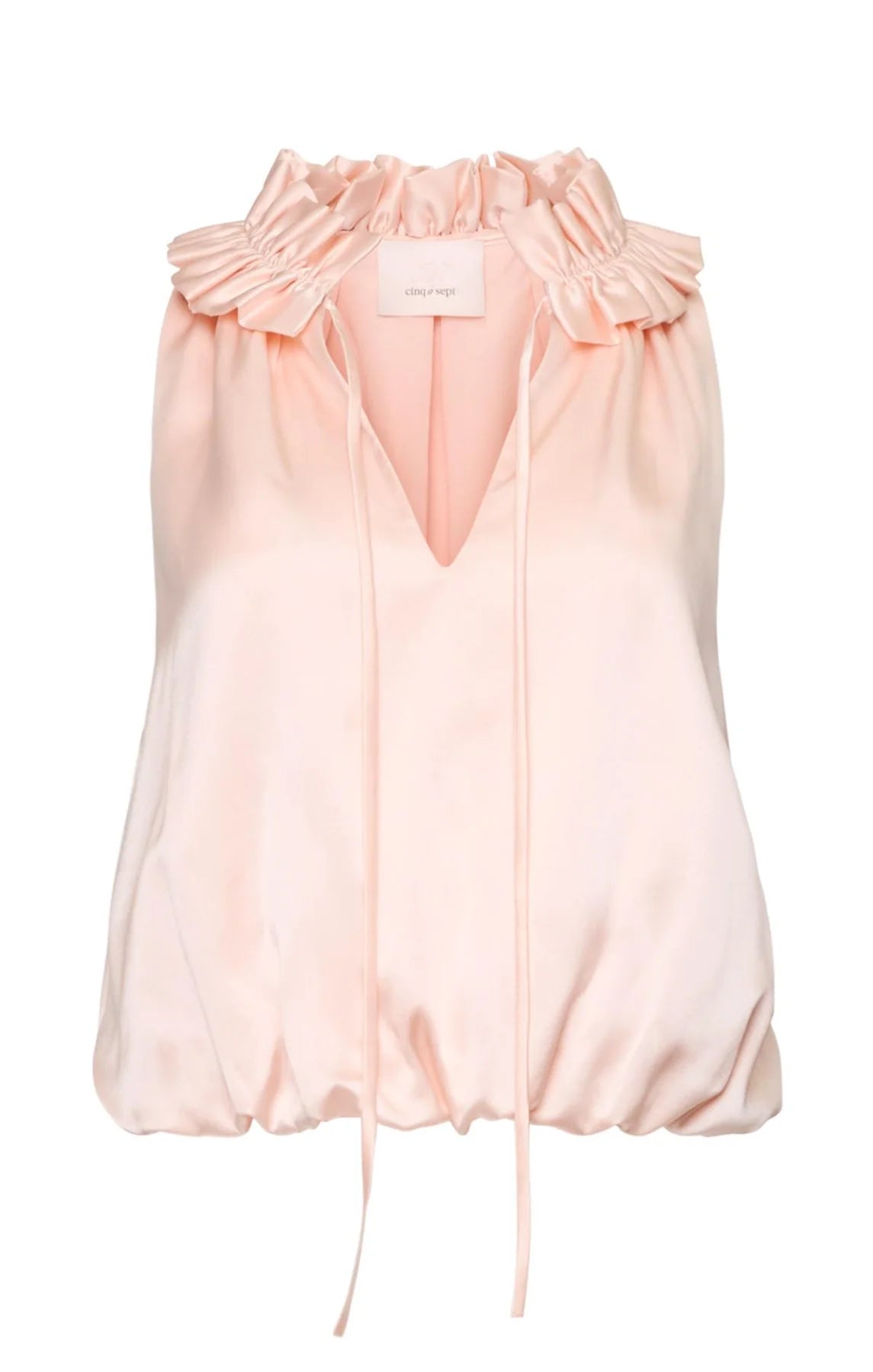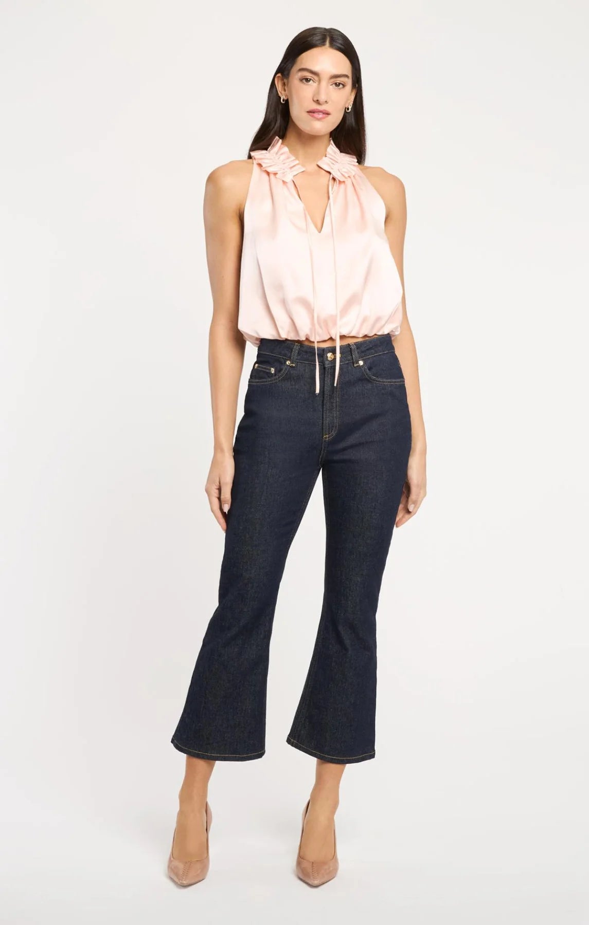 The Lucianna Top is perfect for sunny days with its breezy sleeveless silhouette and charming design details. A ruffled neckline adds personality, while the V-neck and bubble hem create movement. Light, stylish, and effortlessly versatile.
