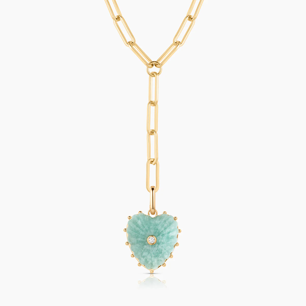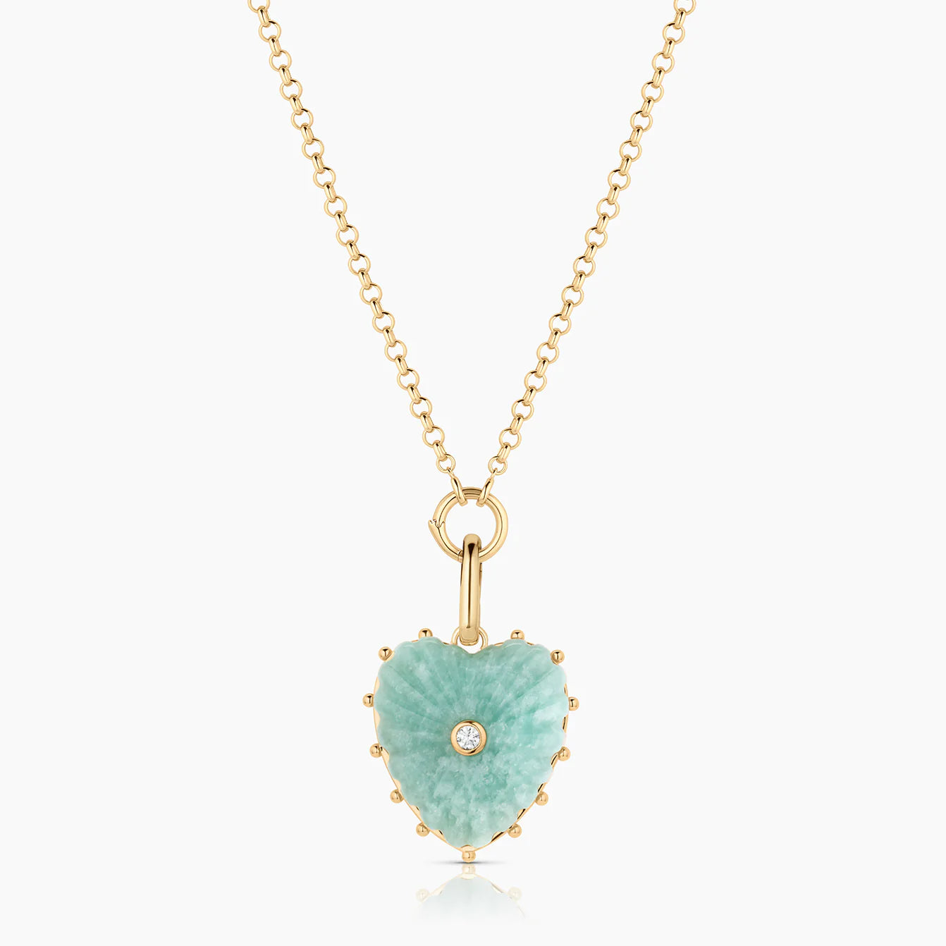 Your favorite hand-carved heart charm just got a gemstone upgrade—amazonite. This cool blue-green shade of amazonite is a favorite gemstone from our Resort Collection. Carved stone, cubic zirconia, and high-shine gold on our clip charm—everything you want and need in a charm.