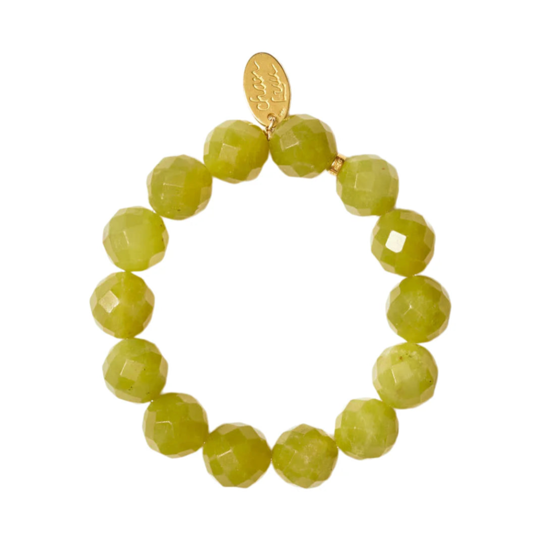 Olive jade stretch bracelet with 18k gold plated sterling silver charm