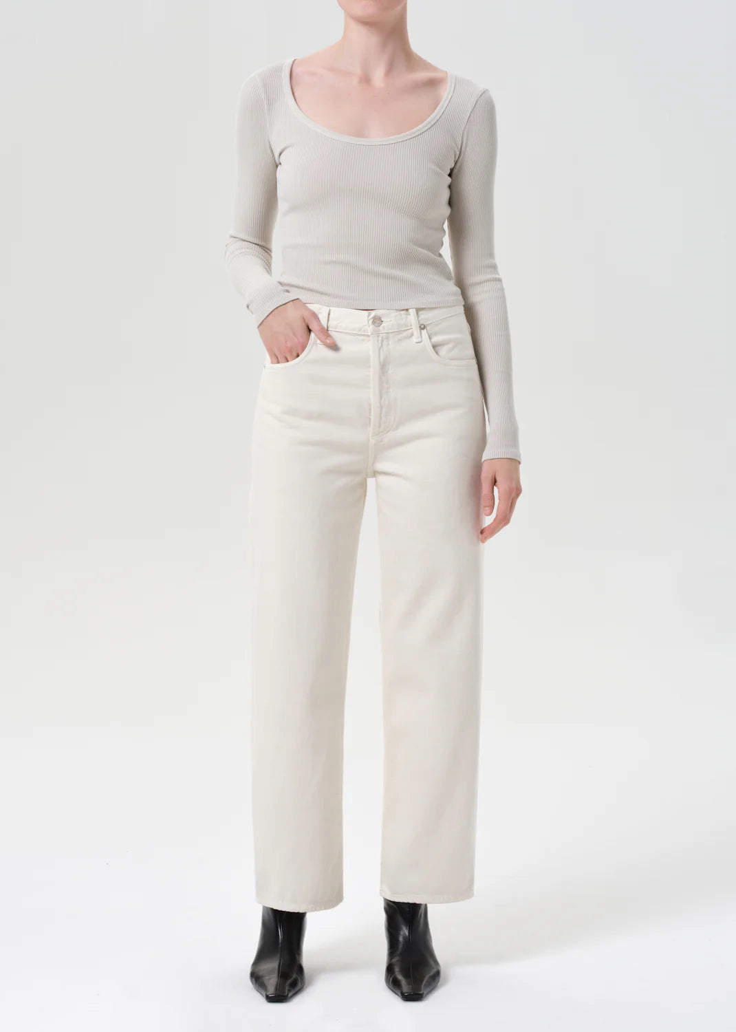 AGOLDE’s Ren Jean offers a clean, elevated take on the classic wide-leg silhouette. Crafted from 100% rigid, non-stretch regenerative cotton, these high-rise jeans feature a warm, light beige tone that adds a subtle yet sophisticated touch to your wardrobe. The cropped wide legs create a relaxed yet flattering fit, while the heavyweight denim with a soft hand ensures durable comfort for all-day wear. Style them with a fitted tee or chunky boots for an easy, polished look.