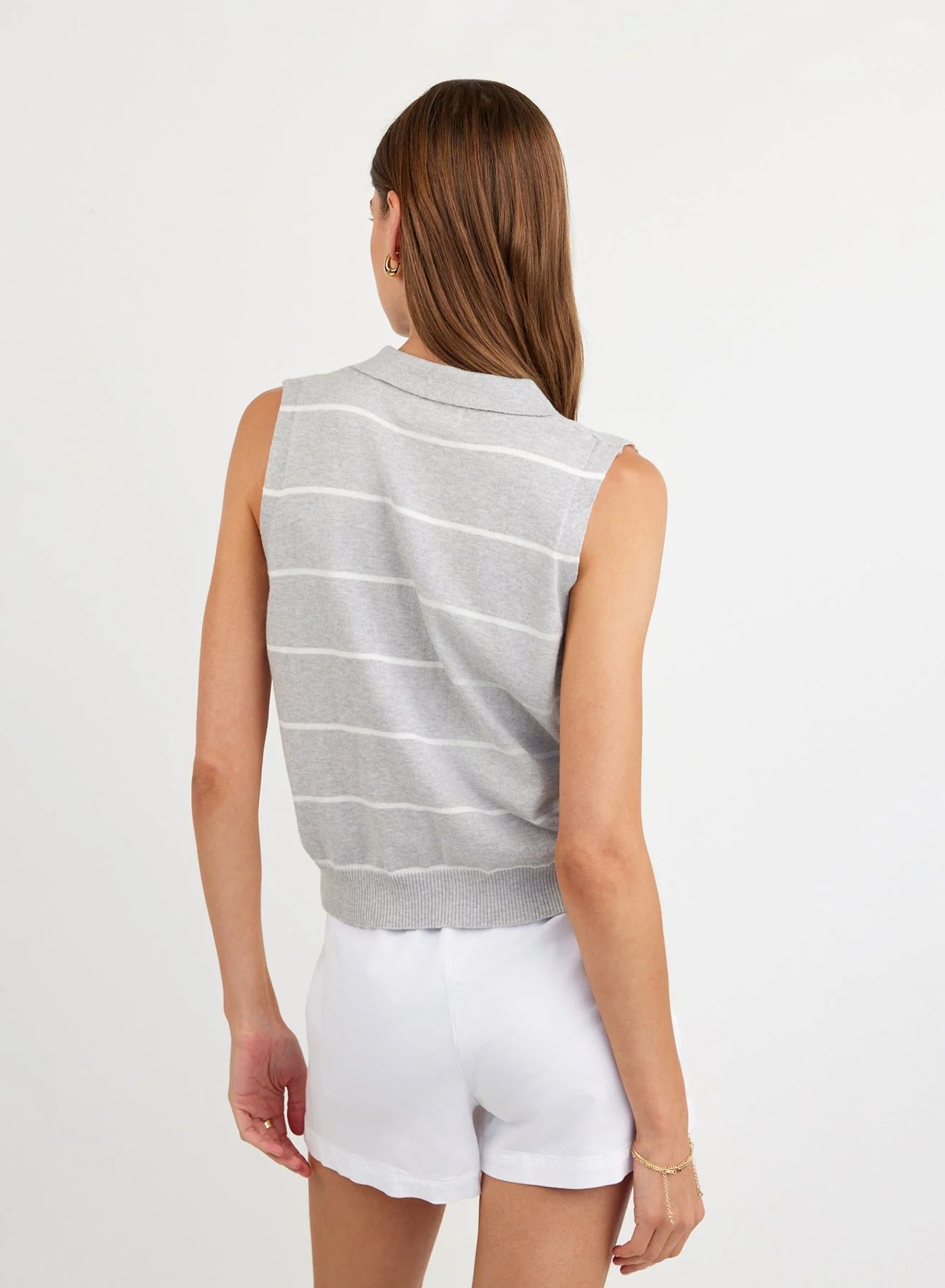 The Sleeveless Placket Pullover is a lightweight knit designed for easy layering and refined everyday wear.